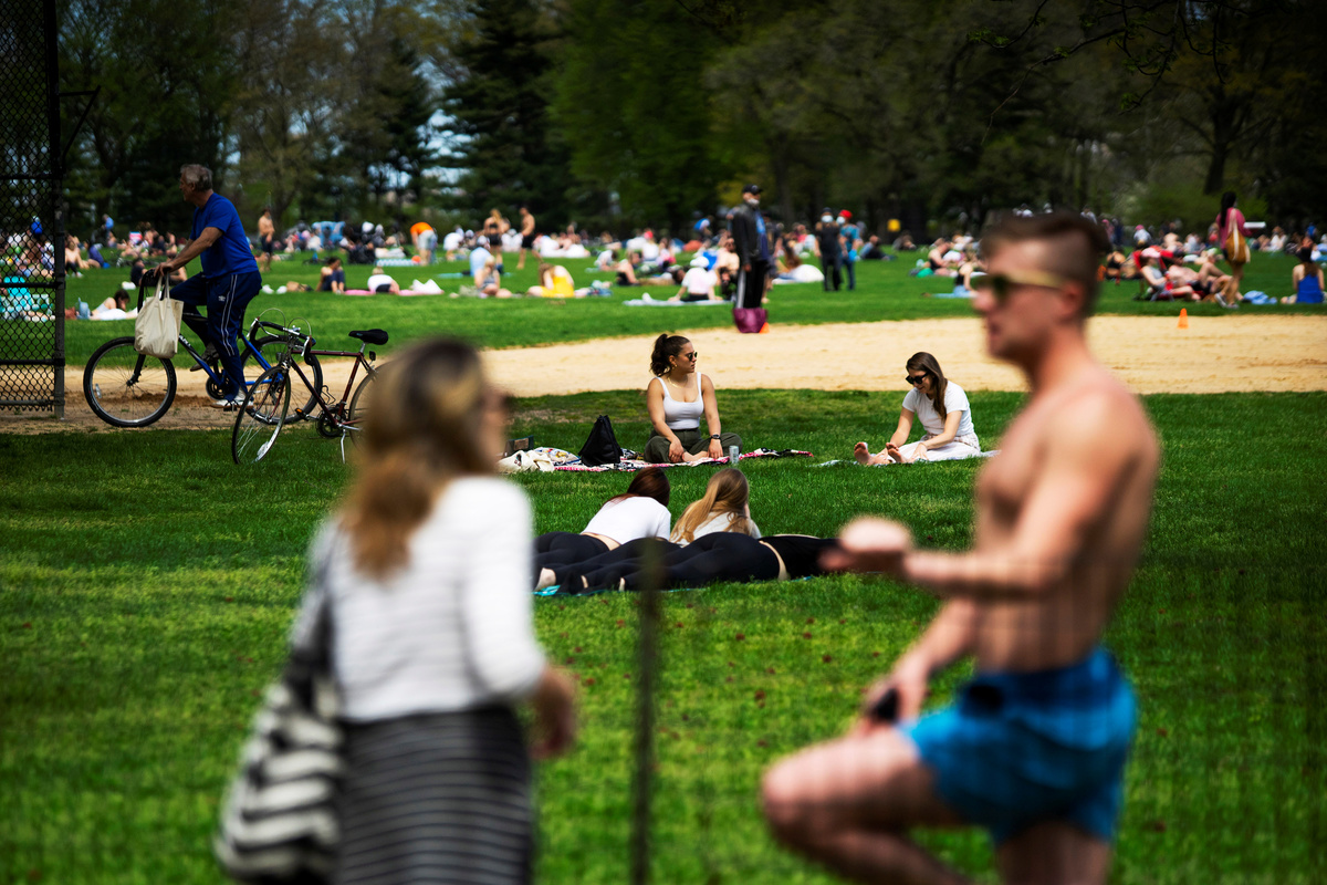 People rest and enjoy the day at Central Park maintaining social distancing norms, during the outbreak of the coronavirus disease (COVID-19) in the Manhattan borough of New York City, U.S., May 2, 2020. REUTERS/Eduardo Munoz