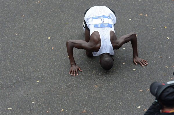 At the end, Keflezighi said, "I wanted to pull it out for New York ... that's why I collapsed. I made it off the ground and used up every energy I had to try to inspire others. We'll all go on with our lives."