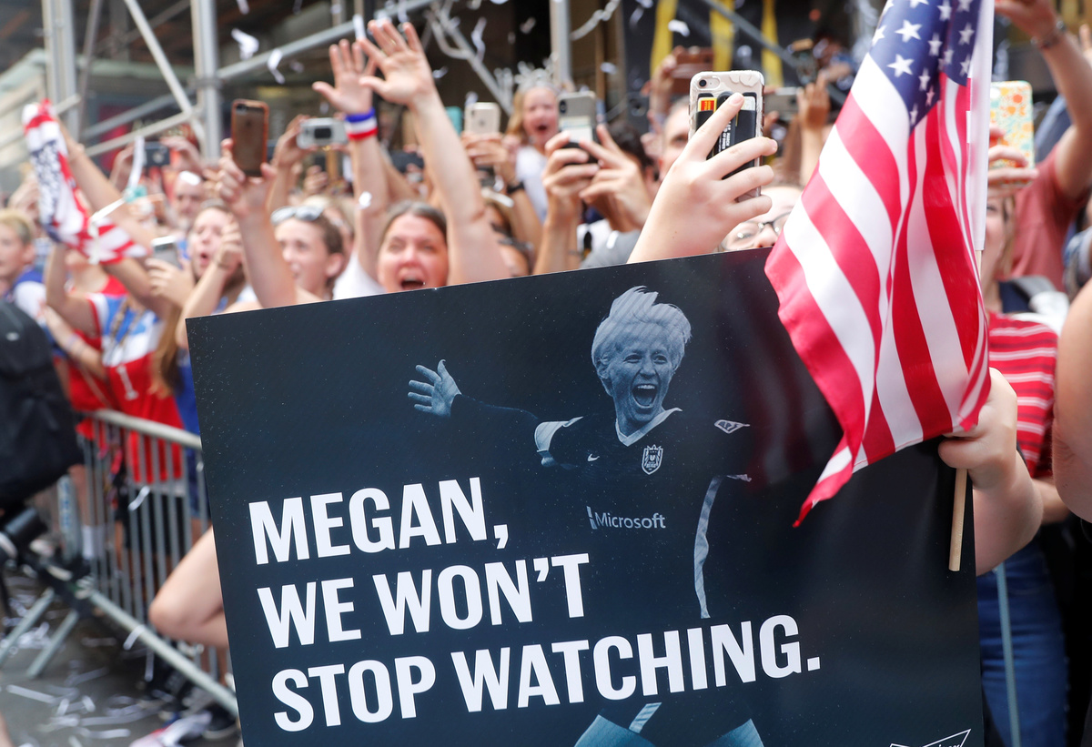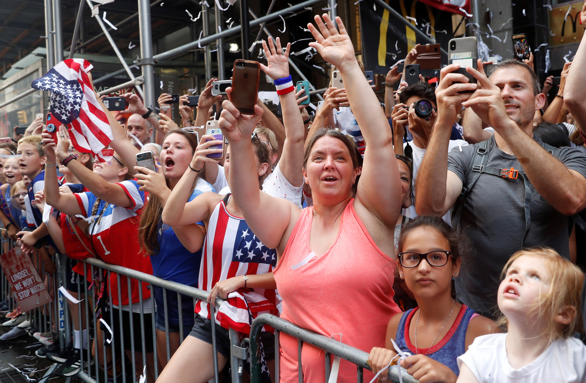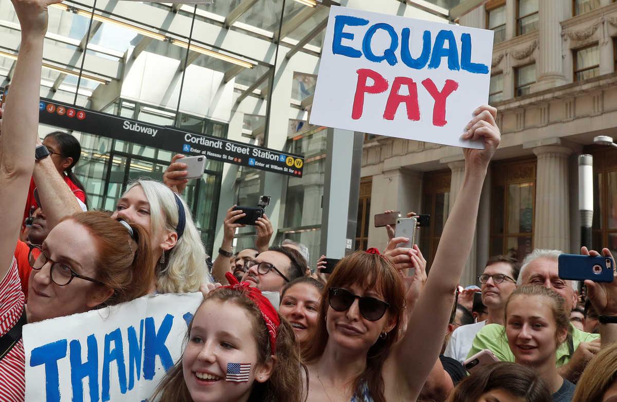 Olivia Ciampi, 15, of Queens, New York, who joined the festivities with her mother, agreed equal pay for the team was long overdue.