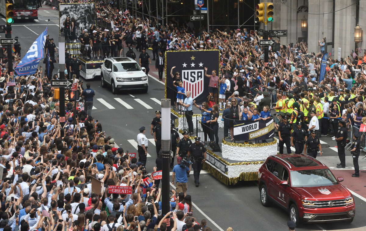 But the parade in New York's financial district was more than a tribute to a championship team, which has been involved in a well-publicized fight with the U.S. Soccer Federation for equal pay with the U.S. men's national team. The cause has endeared the players to those who support demands by women in general for pay equality.