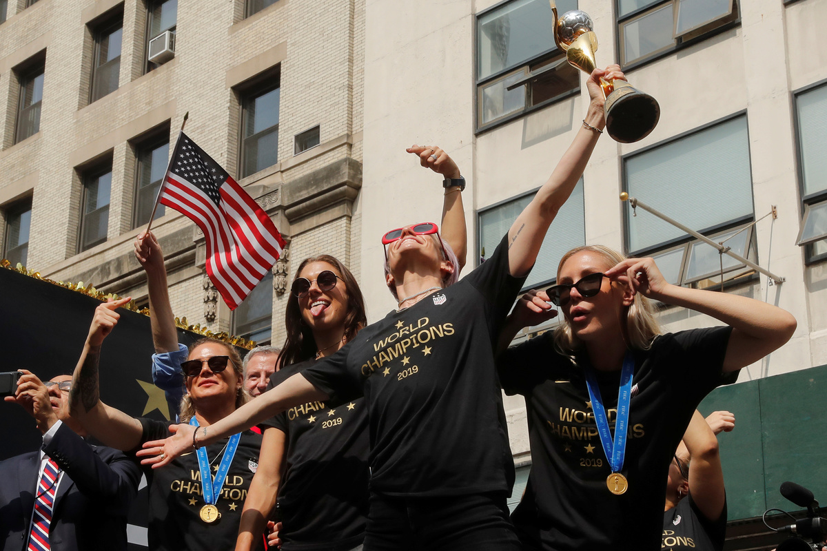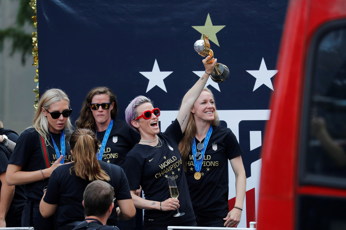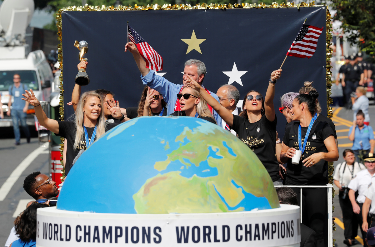 NEW YORK (Reuters) - Amid confetti and chants of "equal pay," New York honoured the U.S. women's soccer team on Wednesday with a ticker-tape parade up the "Canyon of Heroes," celebrating its World Cup triumph and hailing the players' emergence as icons of women's rights.