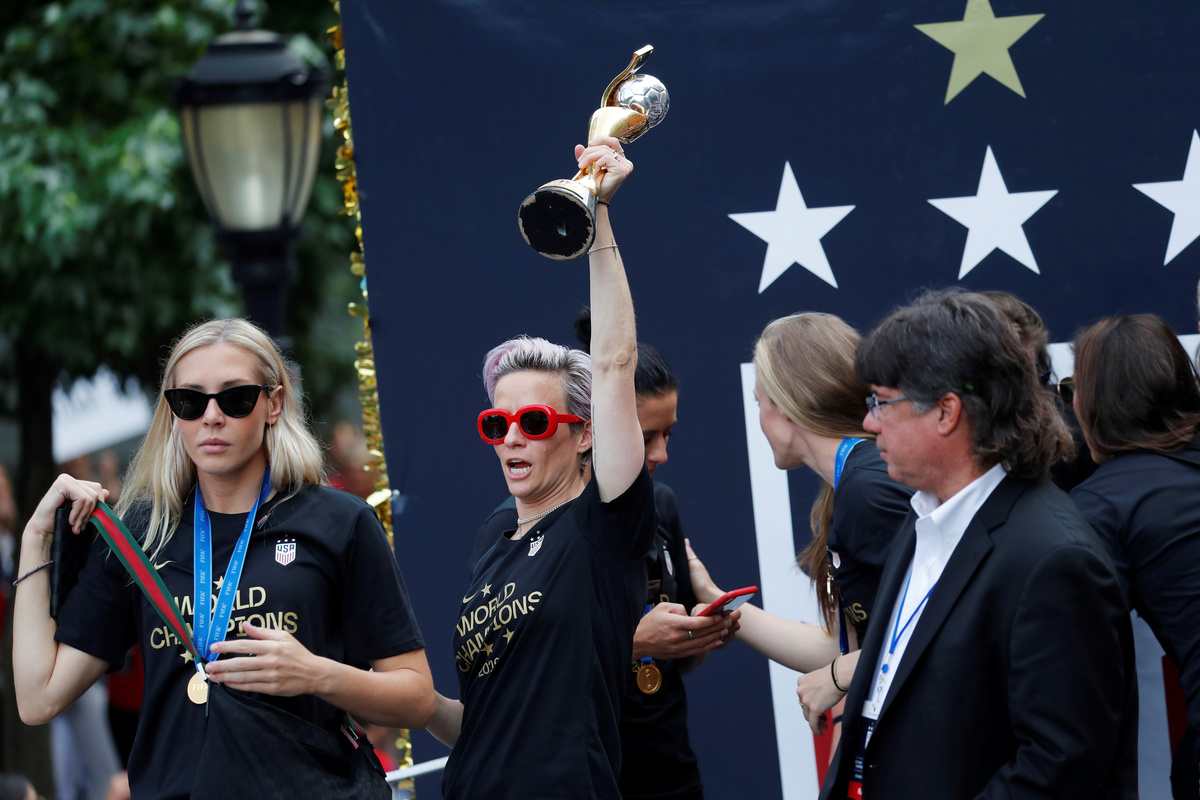 "Make this world a better place," said Rapinoe, the tournament's top scorer, who thrilled the crowd with her now-famous post-goal pose, arms aloft and a beaming smile on her face.