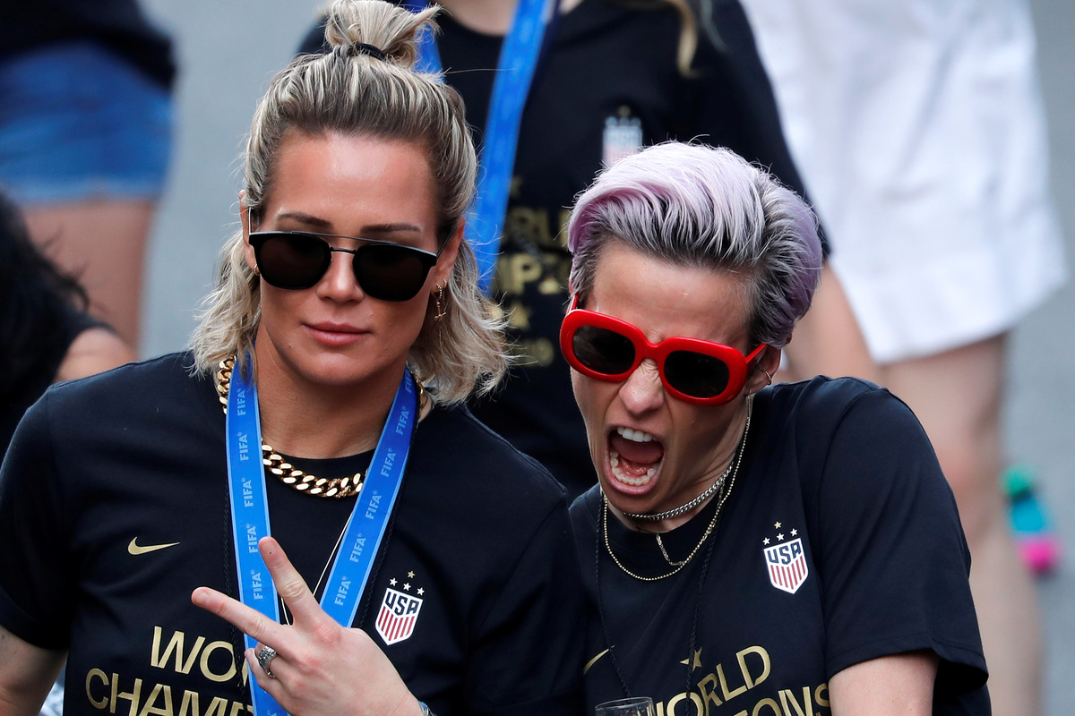 "Love more, hate less," the purple-haired Rapinoe said, pointing to the team's diversity in terms of race and sexual orientation. "There has been so much contention in these past few years."