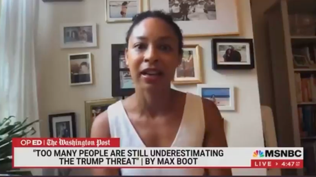 “Did you listen to it?” one person asked, regarding the MSNBC interview. “She’s being completely reasonable. I’m embarrassed by the same aggressive white nationalist posturing behind American flags. You aren’t?”