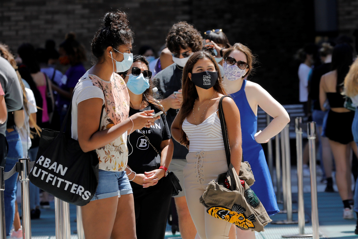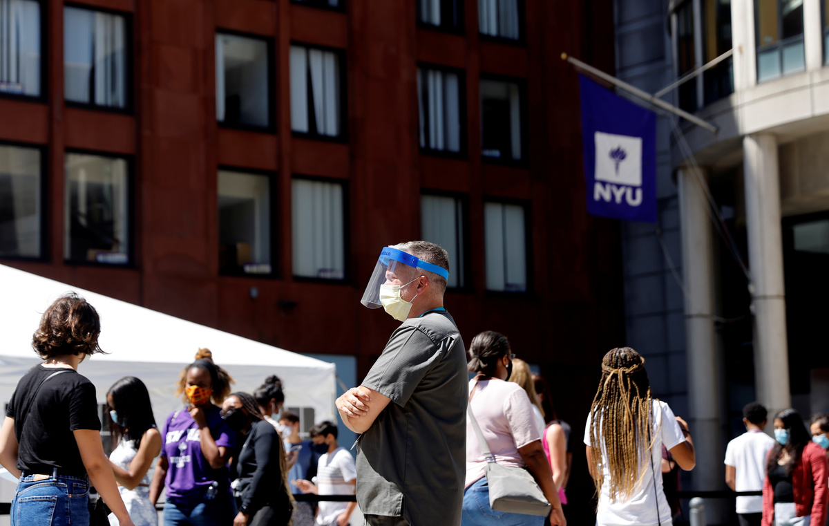 In New York City, once the center of the U.S. pandemic, hundreds of New York University students and staff waited in line outside a white tent on Tuesday for coronavirus testing ahead of some classes resuming in early September.