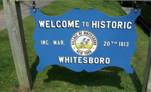 The village’s website claims the emblem dates to the early 1900s and shows what is said to have been a friendly wrestling match between village founder Hugh White, and an Oneida Indian. It claims that Mr White won the match and with it, the lasting respect and goodwill of the Oneidas.