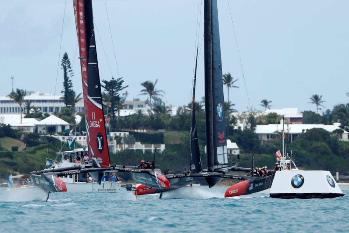 The arch-rivals are due to resume battle on Bermuda's Great Sound on Sunday, with another two races scheduled. The U.S. win means the racing will now go into Monday or beyond.