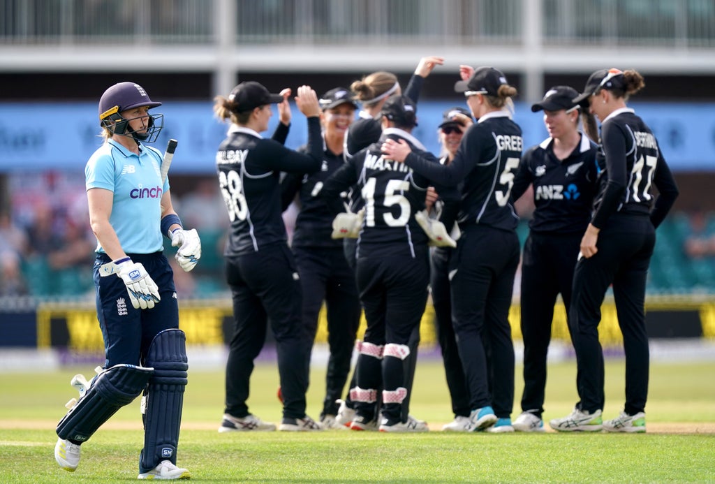 The first hour belonged to Tahuhu, who blew the home side’s top order wide open. Openers Tammy Beaumont and Lauren Winfield-Hill both fell lbw, fiddling indecisively in front of their stumps, while captain Heather Knight went searching in the channel and only found an outside edge.