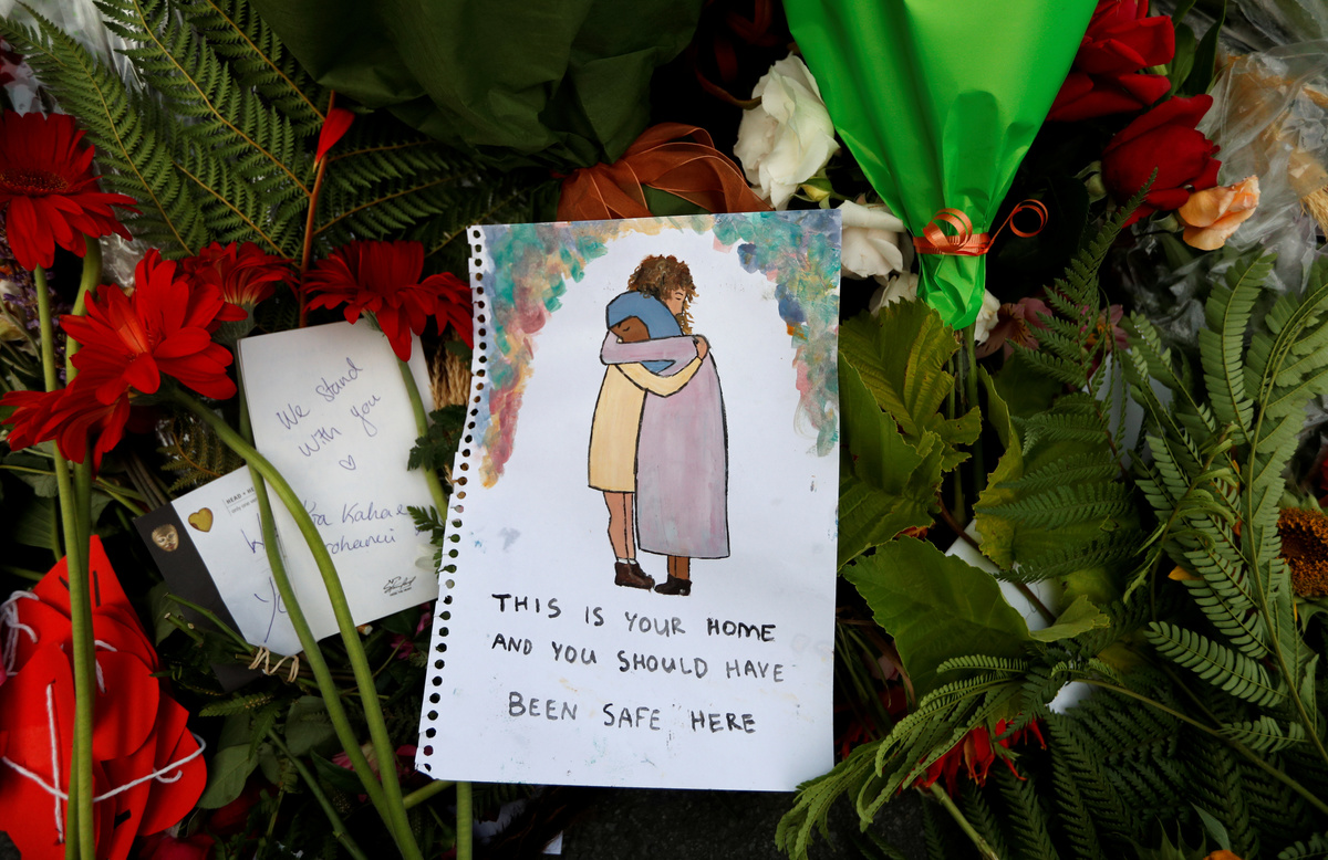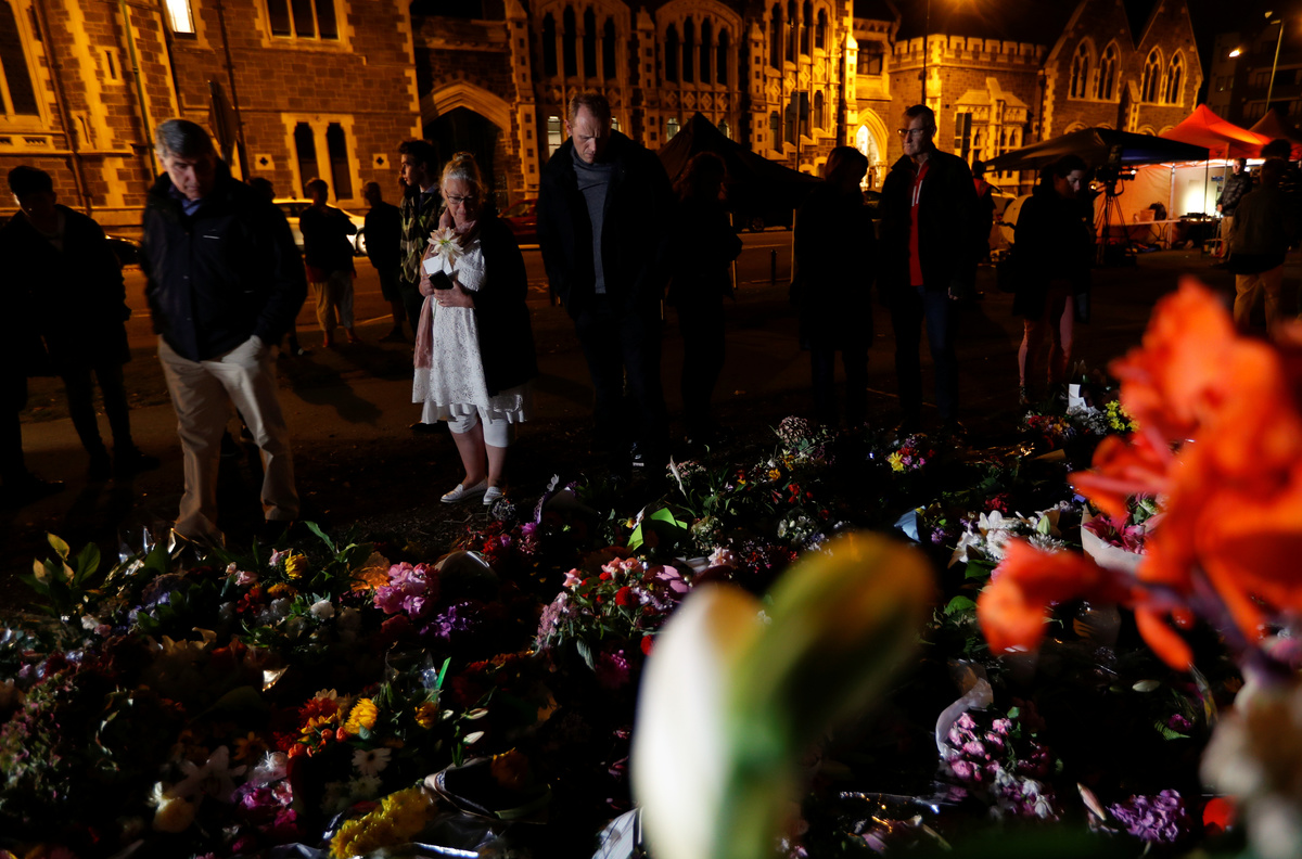 Huge piles of flowers were laid at sites near the mosques and crowds of people of all faiths gathered to pay respects. Some played guitar, sang and lit candles as darkness fell.