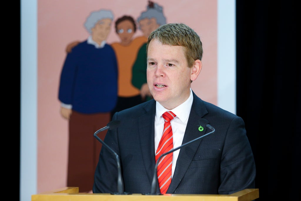 Dr Ashley Bloomfield, the director general of health who was standing next to the minister, raised his eyebrows briefly and appeared to be grinning briefly when the minister slipped up.