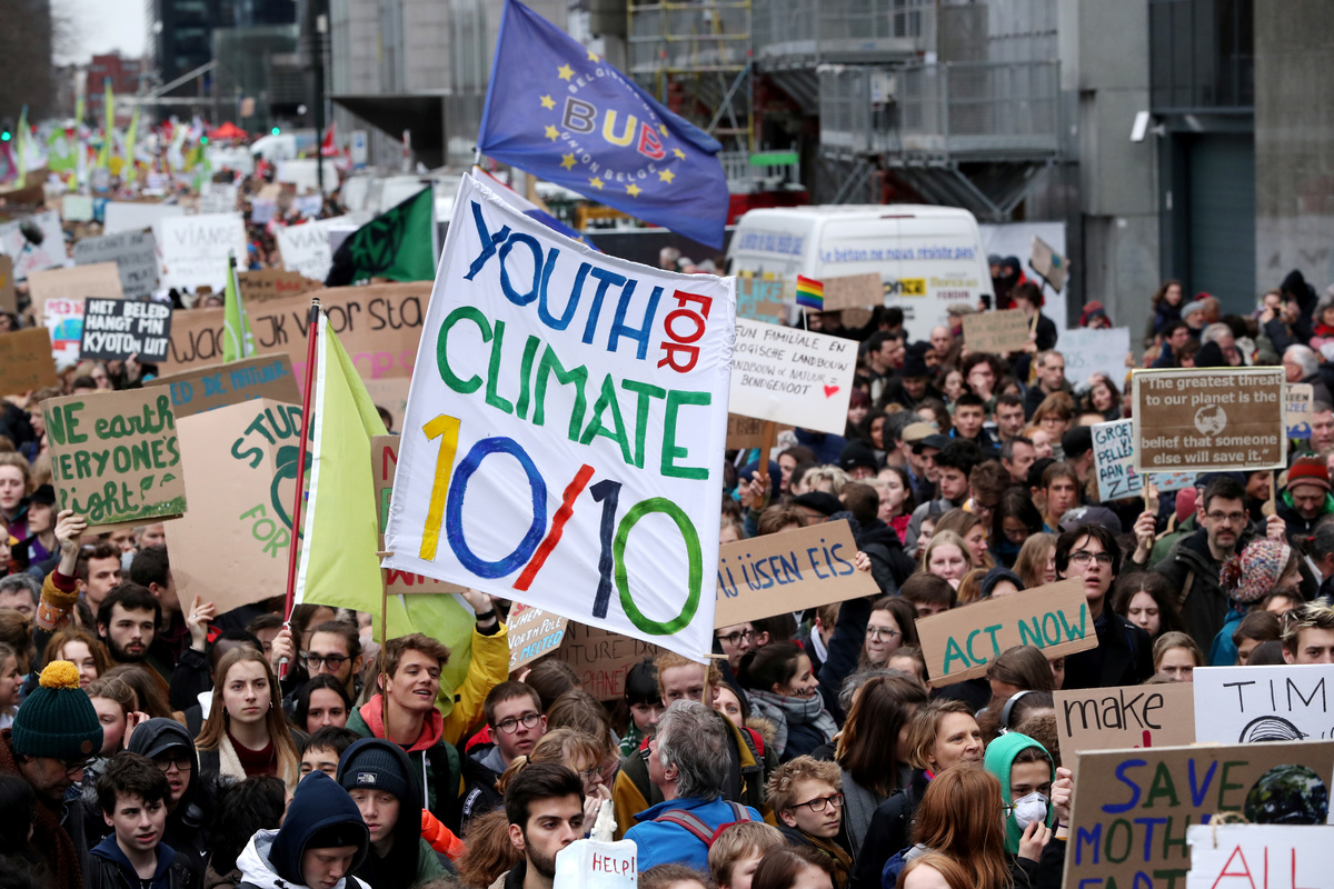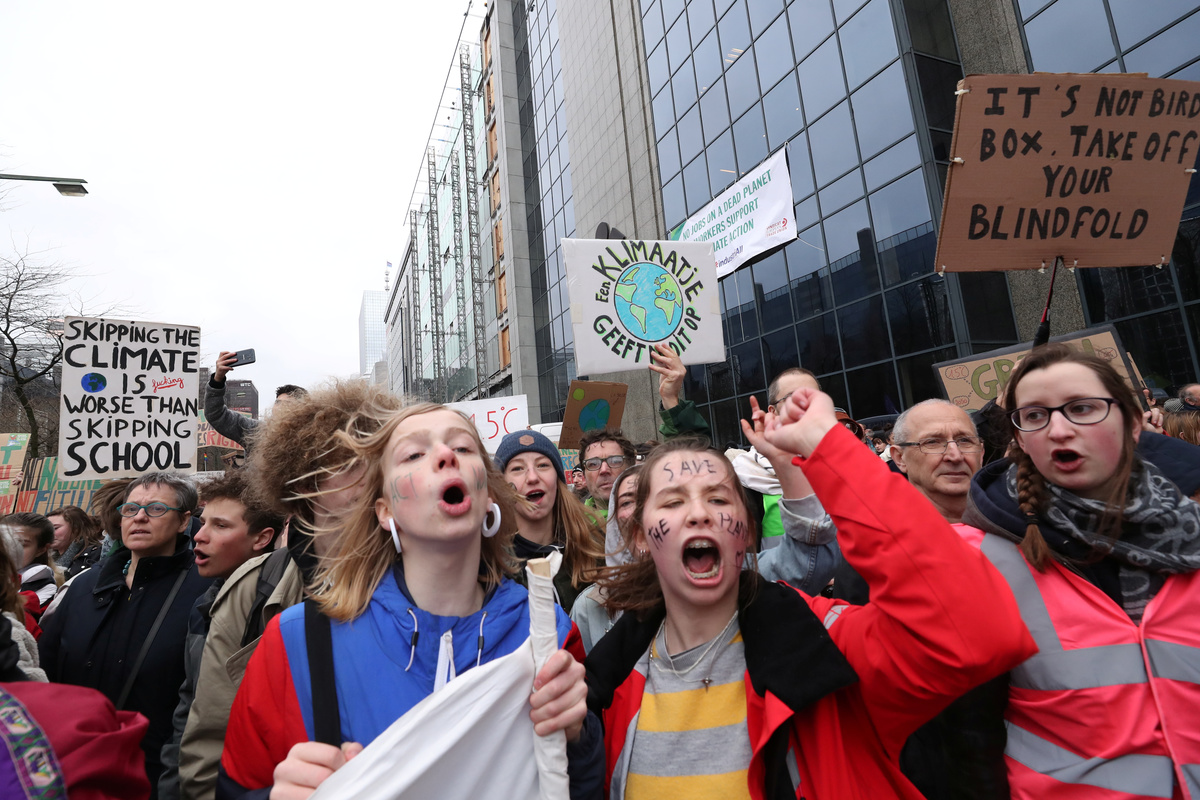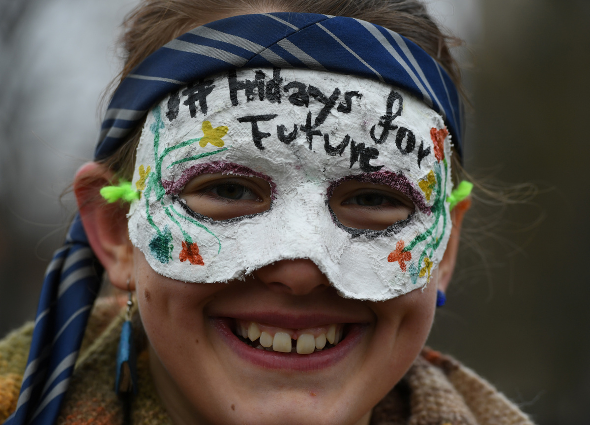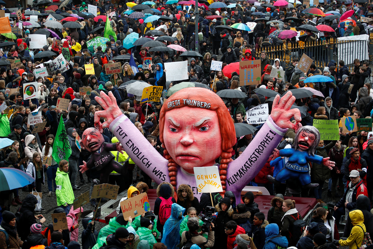 In Düsseldorf, Germany, some 2,000 schoolchildren paraded with a carnival float depicting a giant effigy of Thunberg with "Do something about the climate catastrophe at last" written on her raised arms.