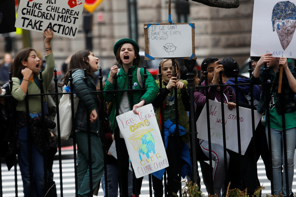 Demonstrations also took place across the United States. In Washington, some 1,500 students rallied in front of the Capitol chanting "climate action now!" and waving homemade placards with slogans such as "Our planet, our future."