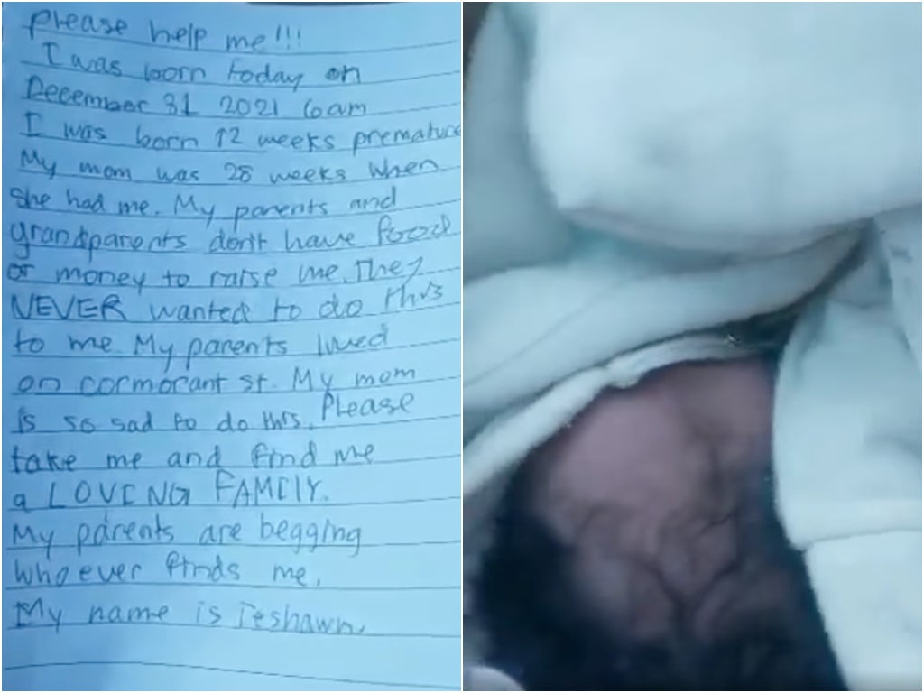 “My parents and grandparents don’t have food or money to raise me. They never wanted to do this to me,” the note said. “Please take me and find me a loving family. My parents are begging whoever finds me. My name is Teshawn.”