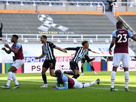 First Dawson, in his attempts to recover from a heavy touch, felled Joelinton on the halfway line and could only look on as Saint-Maximin sped away, twisted his way past the retreating Noble and then saw his weak shot bundled over the line by Diop as referee Kevin Friend allowed play to continue.