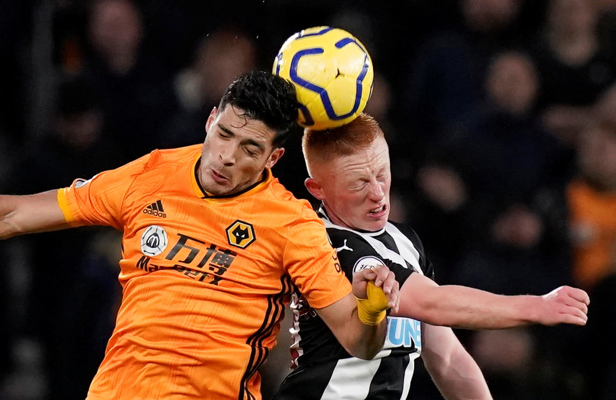 Soccer Football - Premier League - Wolverhampton Wanderers v Newcastle United - Molineux Stadium, Wolverhampton, Britain - January 11, 2020 Newcastle United's Matthew Longstaff in action with Wolverhampton Wanderers' Raul Jimenez REUTERS/Andrew Yates Soccer Football - Premier League - Wolverhampton Wanderers v Newcastle United - Molineux Stadium, Wolverhampton, Britain - January 11, 2020 Wolverhampton Wanderers' Raul Jimenez in action Action Images via Reuters/Carl Recine Soccer Football - Premier League - Wolverhampton Wanderers v Newcastle United - Molineux Stadium, Wolverhampton, Britain - January 11, 2020 Newcastle United's Christian Atsu in action with Wolverhampton Wanderers' Pedro Neto REUTERS/Andrew Yates Soccer Football - Premier League - Wolverhampton Wanderers v Newcastle United - Molineux Stadium, Wolverhampton, Britain - January 11, 2020 Newcastle United's Dwight Gayle is treated by medical staff after sustaining an injury Action Images via Reuters/Carl Recine
