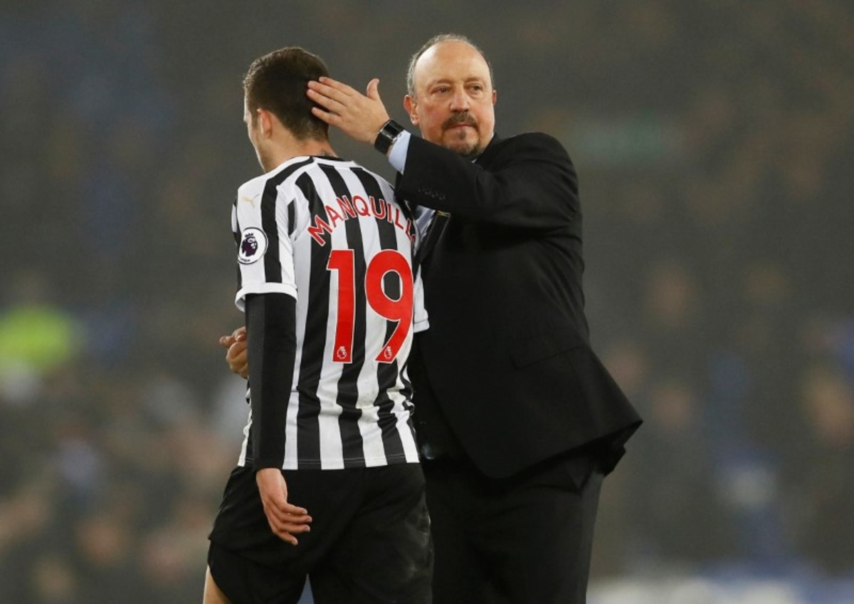Soccer Football - Premier League - Everton v Newcastle United - Goodison Park, Liverpool, Britain - December 5, 2018 Newcastle United's Javier Manquillo with manager Rafael Benitez after the match Action Images via Reuters/Jason Cairnduff