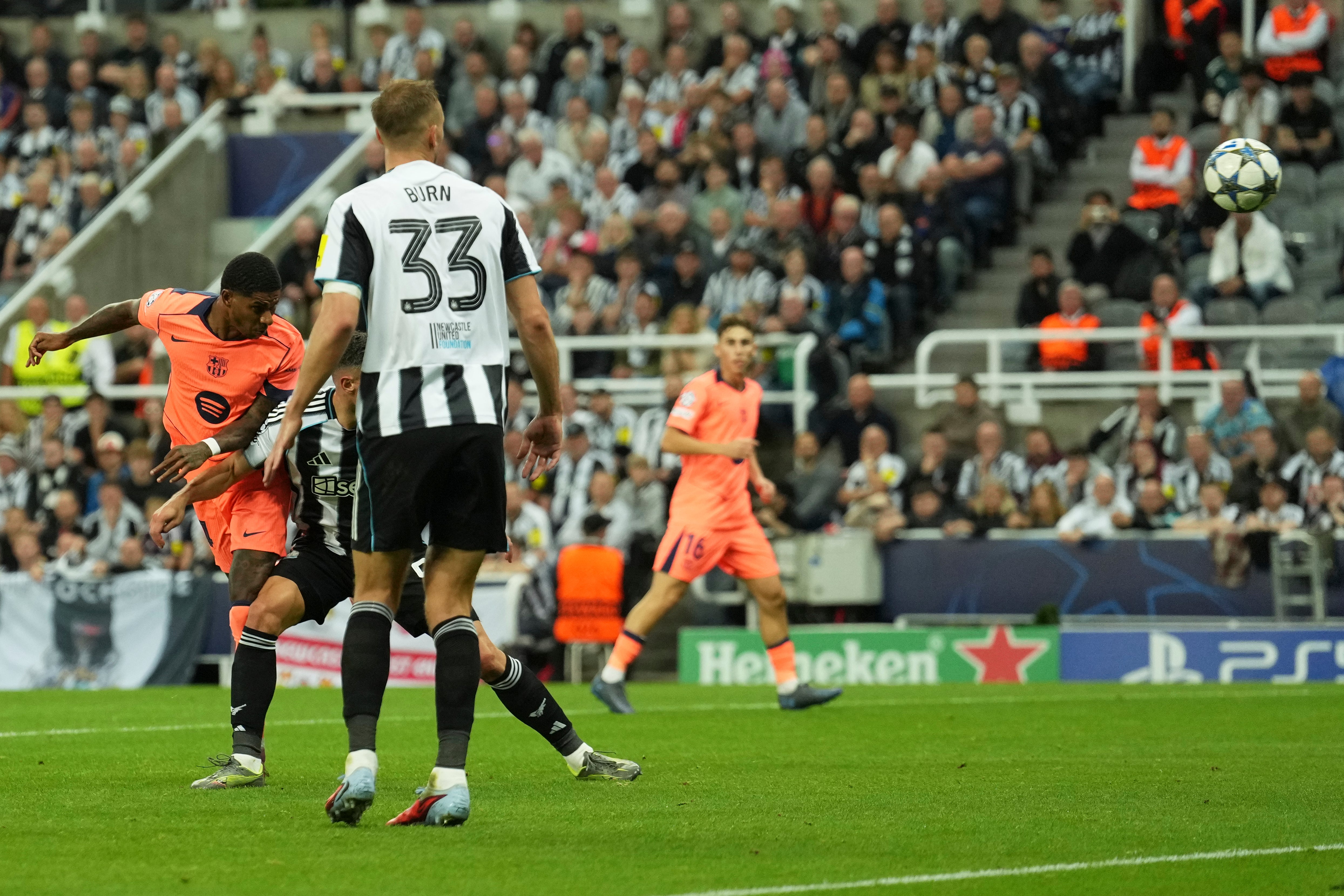 What a hit, son, what a hit. St James’ Park truly is silenced now, apart from the ripple of Barcelona fans high up in the stadium.