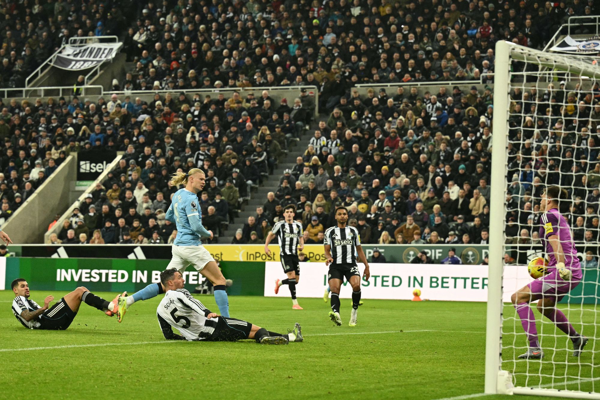 The Norwegian is on the end of a through ball around midway into the Newcastle half and Nick Pope looks like he’s in no-man’s land as he hopes to pressure the City striker, but it works out well as Haaland miscues his attempt to curl it past the Magpies ‘keeper.