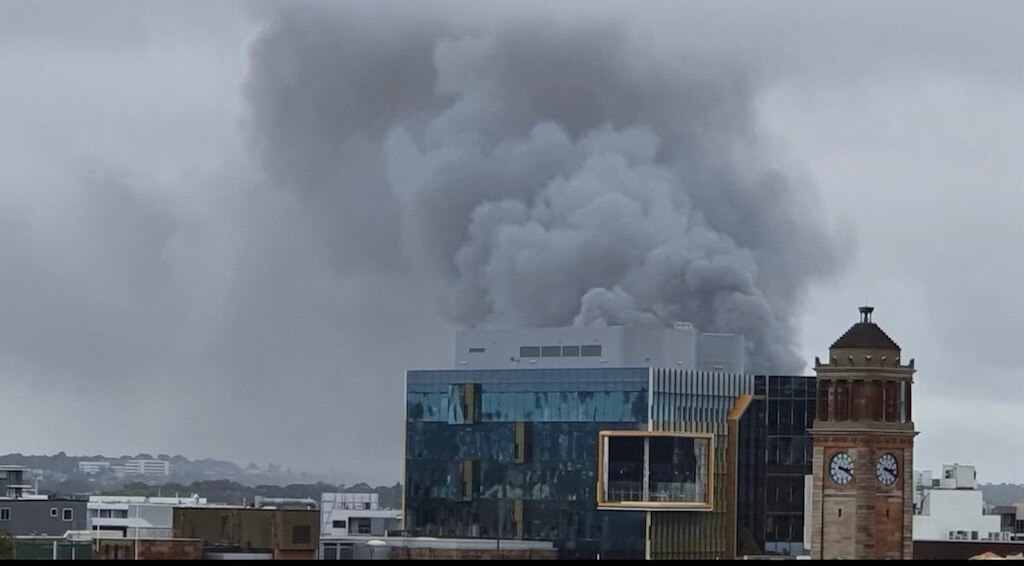An extraordinary scene has unfolded in the harbourside Newcastle suburb of Wickham where a fire engulfed an old wool store building.