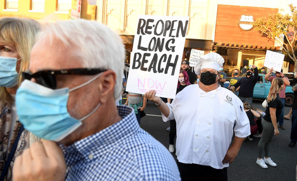 Owner and chef Trevor Nettman protests at "A March To Save Small Businesses" along 2nd Street in the Belmont Shore area of Long Beach, California on Wednesday, Dec. 2, 2020. California Gov. Gavin Newsom has issued a set of far-reaching restrictions tied to regional strains on critical care services as COVID-19 cases continue to rise. (Wally Skalij/Los Angeles Times/TNS)