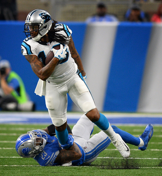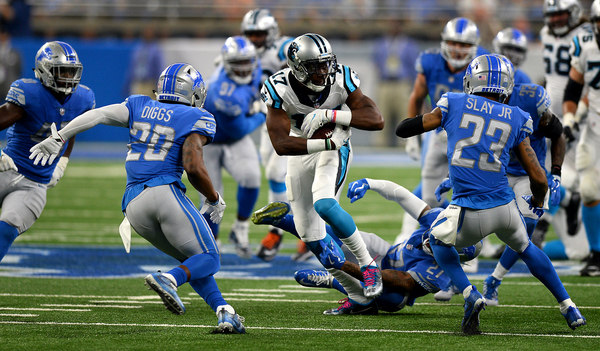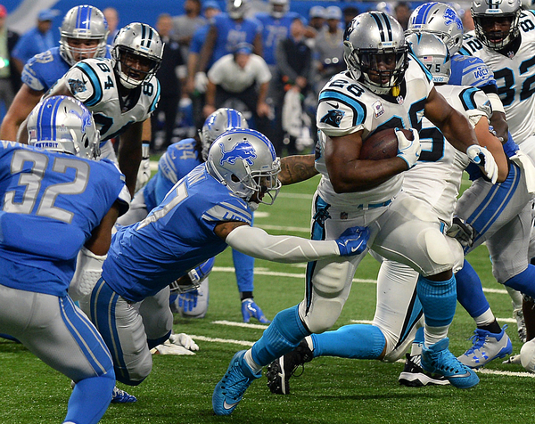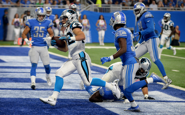 Rookie back Christian McCaffrey notched his first career TD on a 6-yard shovel pass, and Detroit-area native Devin Funchess scored vs. his hometown team when Newton rocketed a 10-yard pass to him in the back of the end zone.