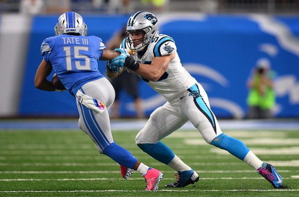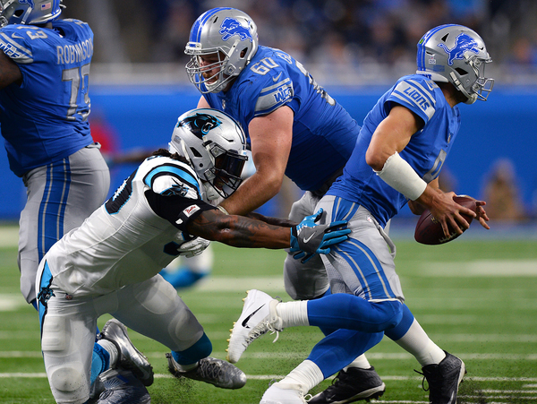 With a big lead, the Panthers' defense started teeing off on Stafford in the second half. Defensive tackle Kawann Short forced a fumble with a sack, while veteran edge rusher Julius Peppers recorded his 149th career sack.