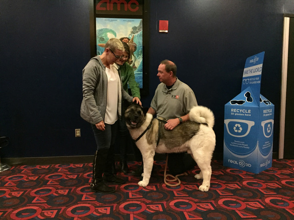 Six dogs were in the lobby for hugs and snuggles as people exited the screening. Three of those dogs _ two golden retrievers, Tess and Ben, and Cole's own Akita, Spartacus _ were on scene on that terrible day.