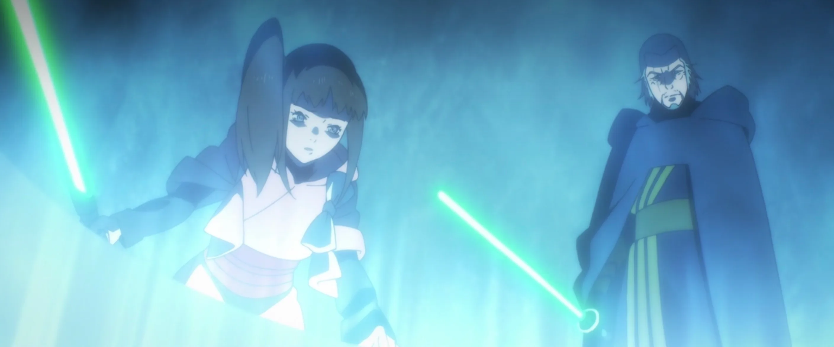 Of all the shorts in Visions, “The Ninth Jedi” sticks out the most because its world-building feels both the most thought-out while simultaneously incomplete. Why have the Jedi vanished? Is this really happening in a post-Rise of Skywalker future? Did the Margrave get some fashion tips from legends of Darth Vader? Do the Jedi of this era think of the Vader association as a good thing, possibly because Vader kind of brought balance to the Force?