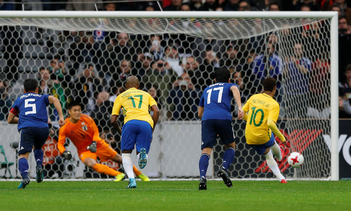 Brazil eased up and Tomoaki Makino headed in from a corner in the 63rd minute to make the score more respectable for Japan. Kenyu Sugimoto had another effort in the net for Japan late in the game but it was offside.