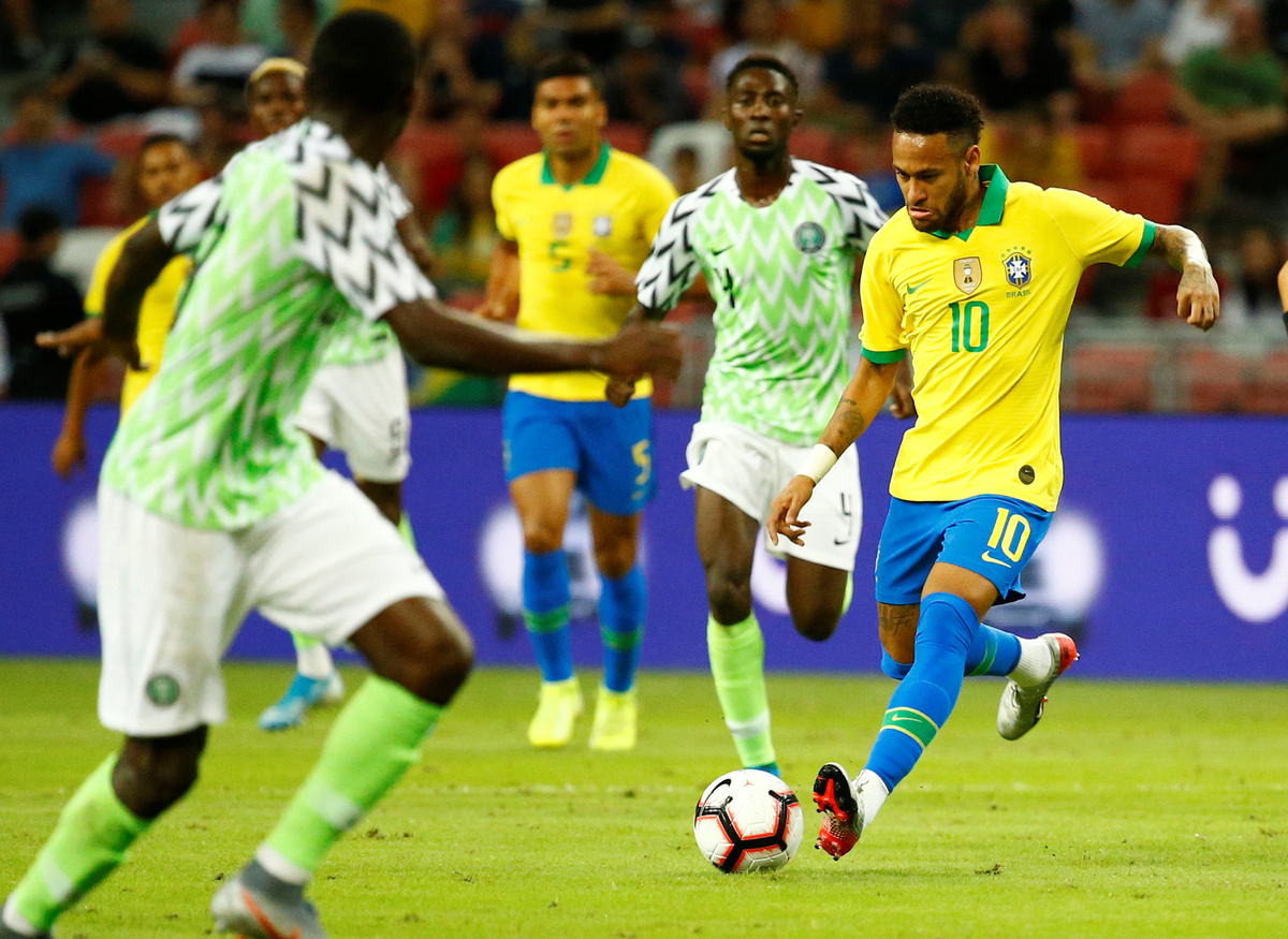 SINGAPORE (Reuters) - Neymar went off injured 12 minutes into Brazil's 1-1 draw with Nigeria in a friendly in Singapore on Sunday.