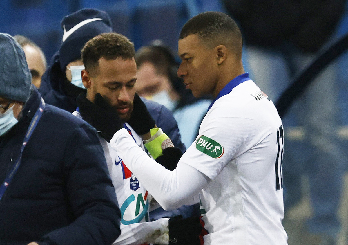 Neymar, however, went down after a robust challenge from Steeve Yago in the 56th minute, holding his left thigh as he left the field to be replaced by Mbappe.