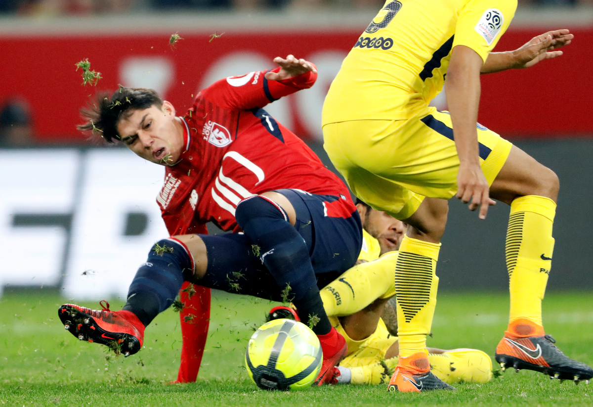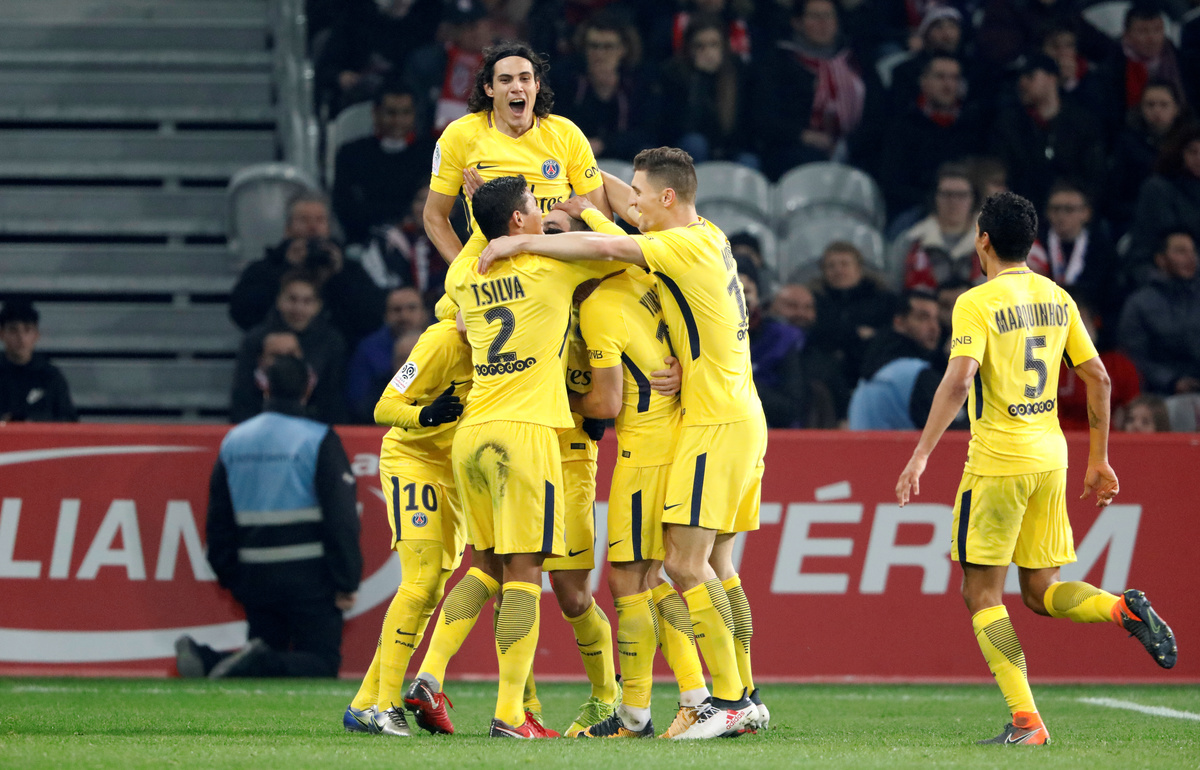 Soccer Football - Ligue 1 - LOSC Lille vs Paris St Germain - Stade Pierre-Mauroy, Lille, France - February 3, 2018 Lille’s Thiago Mendes in action with Paris Saint-Germain’s Javier Pastore REUTERS/Charles PlatiauSoccer Football - Ligue 1 - LOSC Lille vs Paris St Germain - Stade Pierre-Mauroy, Lille, France - February 3, 2018 Paris Saint-Germain’s Angel Di Maria in action REUTERS/Charles PlatiauSoccer Football - Ligue 1 - LOSC Lille vs Paris St Germain - Stade Pierre-Mauroy, Lille, France - February 3, 2018 Paris Saint-Germain’s Edinson Cavani in action with Lille’s Edgar Ie REUTERS/Charles PlatiauSoccer Football - Ligue 1 - LOSC Lille vs Paris St Germain - Stade Pierre-Mauroy, Lille, France - February 3, 2018 Paris Saint-Germain’s Neymar in action with Lille's Kouadio Yves Dabila REUTERS/Charles PlatiauSoccer Football - Ligue 1 - LOSC Lille vs Paris St Germain - Stade Pierre-Mauroy, Lille, France - February 3, 2018 Paris Saint-Germain’s Yuri Berchiche celebrates scoring their first goal with Marco Verratti and Javier Pastore REUTERS/Charles PlatiauSoccer Football - Ligue 1 - LOSC Lille vs Paris St Germain - Stade Pierre-Mauroy, Lille, France - February 3, 2018 Lille’s Luiz Araujo in action with Paris Saint-Germain’s Dani Alves REUTERS/Charles PlatiauSoccer Football - Ligue 1 - LOSC Lille vs Paris St Germain - Stade Pierre-Mauroy, Lille, France - February 3, 2018 Paris Saint-Germain’s Neymar scores their second goal REUTERS/Charles PlatiauSoccer Football - Ligue 1 - LOSC Lille vs Paris St Germain - Stade Pierre-Mauroy, Lille, France - February 3, 2018 Paris Saint-Germain’s Neymar celebrates scoring their second goal with Thiago Silva REUTERS/Charles PlatiauSoccer Football - Ligue 1 - LOSC Lille vs Paris St Germain - Stade Pierre-Mauroy, Lille, France - February 3, 2018 Lille’s Thiago Mendes in action with Paris Saint-Germain’s Javier Pastore REUTERS/Charles PlatiauSoccer Football - Ligue 1 - LOSC Lille vs Paris St Germain - Stade Pierre-Mauroy, Lille, France - February 3, 2018 Paris Saint-Germain’s Giovanni Lo Celso celebrates with team mates after scoring their third goal REUTERS/Charles Platiau