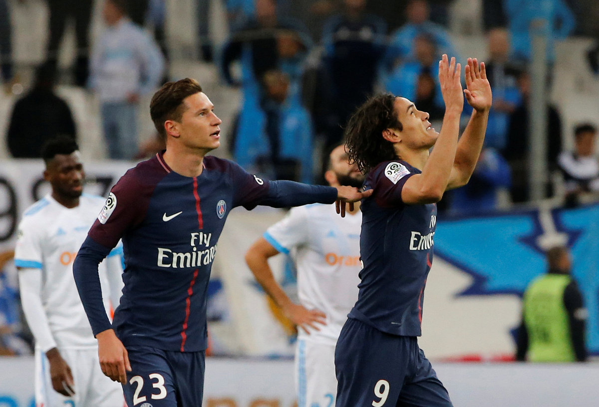 Soccer Football - Ligue 1 - Olympique de Marseille vs Paris St Germain - Orange Velodrome, Marseille, France - October 22, 2017 Paris Saint-Germain’s Edinson Cavani scores their second goal as Marseille's Steve Mandanda attempts save REUTERS/Jean-Paul PelissierSoccer Football - Ligue 1 - Olympique de Marseille vs Paris St Germain - Orange Velodrome, Marseille, France - October 22, 2017 Paris Saint-Germain’s Edinson Cavani celebrates scoring their second goal with team mates REUTERS/Jean-Paul PelissierSoccer Football - Ligue 1 - Olympique de Marseille vs Paris St Germain - Orange Velodrome, Marseille, France - October 22, 2017 Paris Saint-Germain’s Edinson Cavani celebrates scoring their second goal REUTERS/Jean-Paul PelissierSoccer Football - Ligue 1 - Olympique de Marseille vs Paris St Germain - Orange Velodrome, Marseille, France - October 22, 2017 Paris Saint-Germain’s Edinson Cavani scores their second goal REUTERS/Philippe LaurensonSoccer Football - Ligue 1 - Olympique de Marseille vs Paris St Germain - Orange Velodrome, Marseille, France - October 22, 2017 Marseille coach Rudi Garcia REUTERS/Jean-Paul PelissierSoccer Football - Ligue 1 - Olympique de Marseille vs Paris St Germain - Orange Velodrome, Marseille, France - October 22, 2017 Marseille's Florian Thauvin celebrates scoring their second goal REUTERS/Jean-Paul Pelissier
