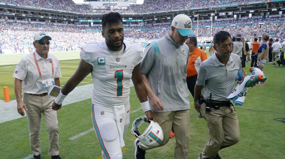 Tagovailoa briefly left Sunday’s 21-19 victory over the Buffalo Bills, returning despite appearing to be disoriented by what the team originally said was a head injury. He missed Miami’s last three snaps of the first half, then returned and played the rest of the way as the Dolphins became the AFC’s last unbeaten team by knocking off the Bills.