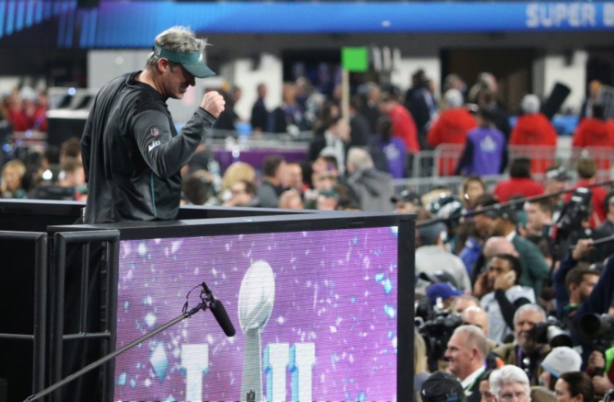 But Philadelphia, who embraced their lowly status with some players wearing dog masks throughout the playoffs, stunned New England with a 41-33 victory to cap a remarkable turnaround after finishing last in their division a year ago.