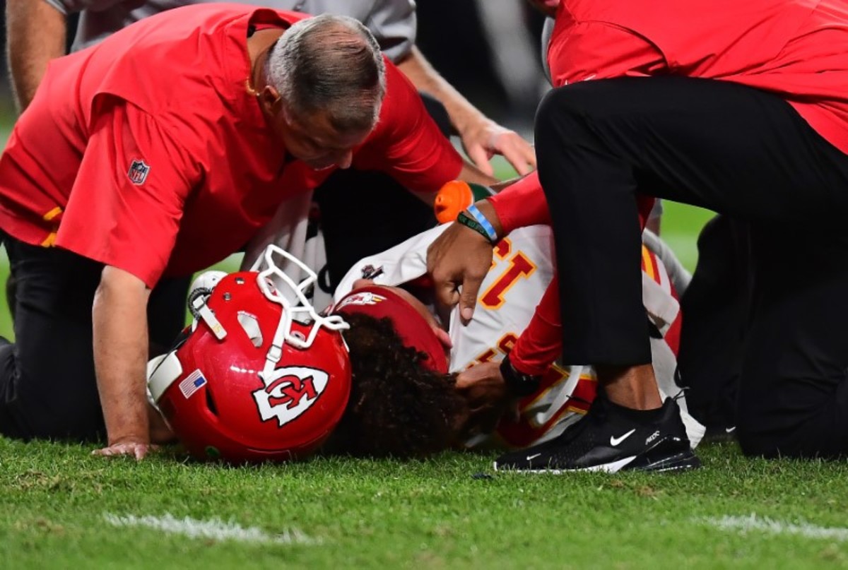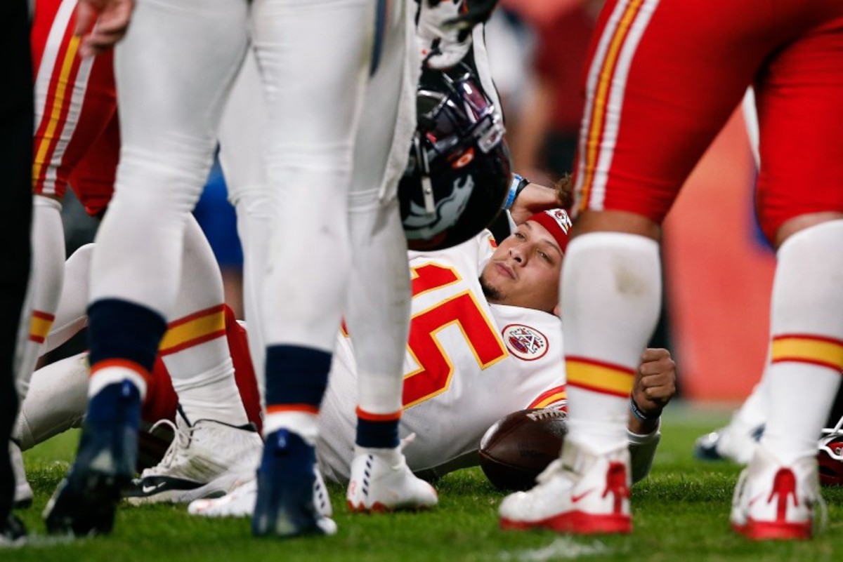 (Reuters) - Kansas City Chiefs quarterback Patrick Mahomes, the NFL's reigning MVP, suffered a right knee injury that forced him from the game against the Denver Broncos on Thursday. Mahomes was injured during a quarterback sneak during the second quarter where he plowed forward amidst a pile of players.