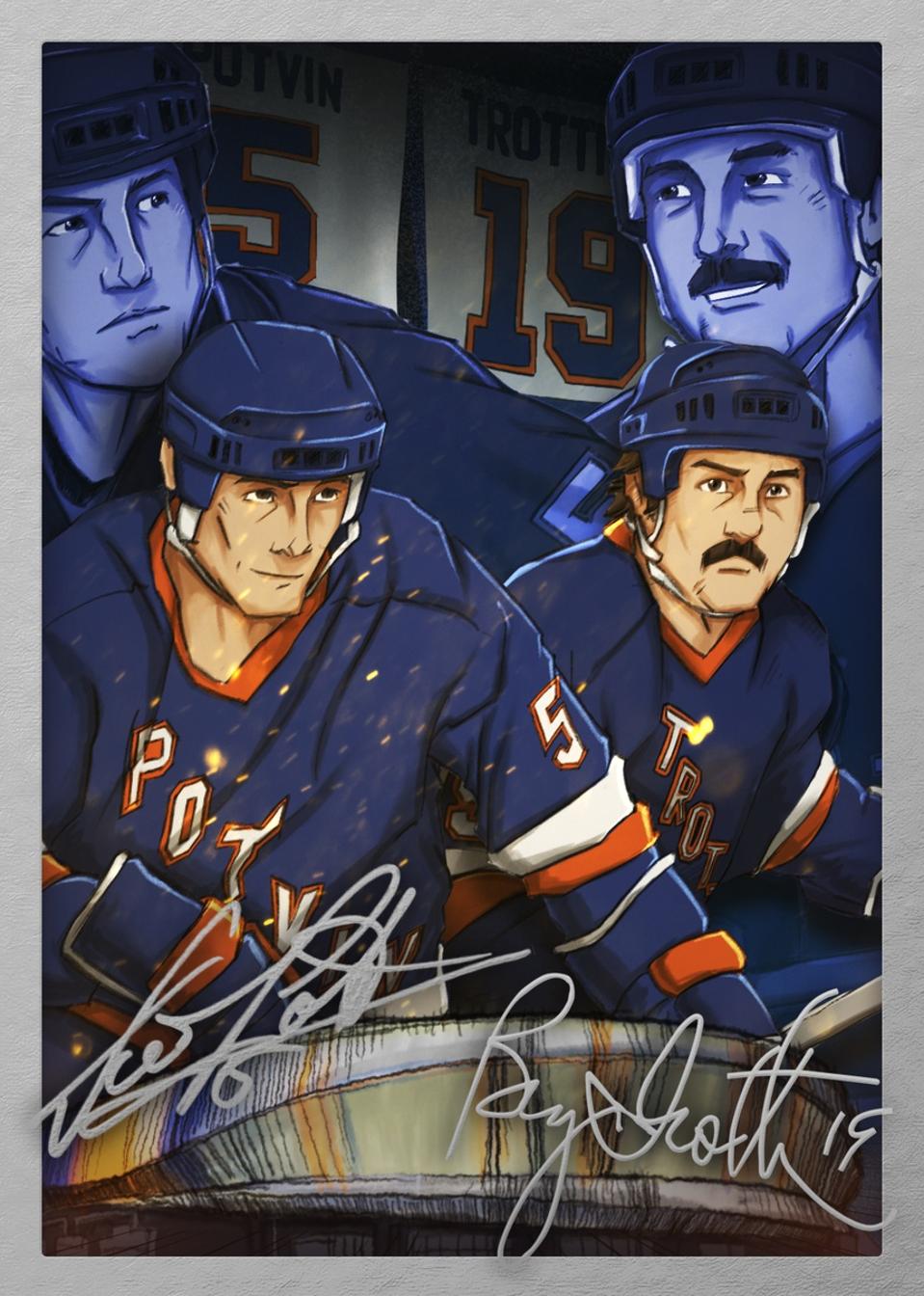 With the Islanders a little more than two months away from playing their first game at their true permanent post-Coliseum home — UBS Arena is scheduled to open for hockey Nov. 20 with the Islanders hosting the Calgary Flames — Potvin and dynasty teammate Bryan Trottier are taking one more look back at the Coliseum years with a quartet of NFTs (non-fungible tokens) produced in conjunction with Fanaply and Flux88.