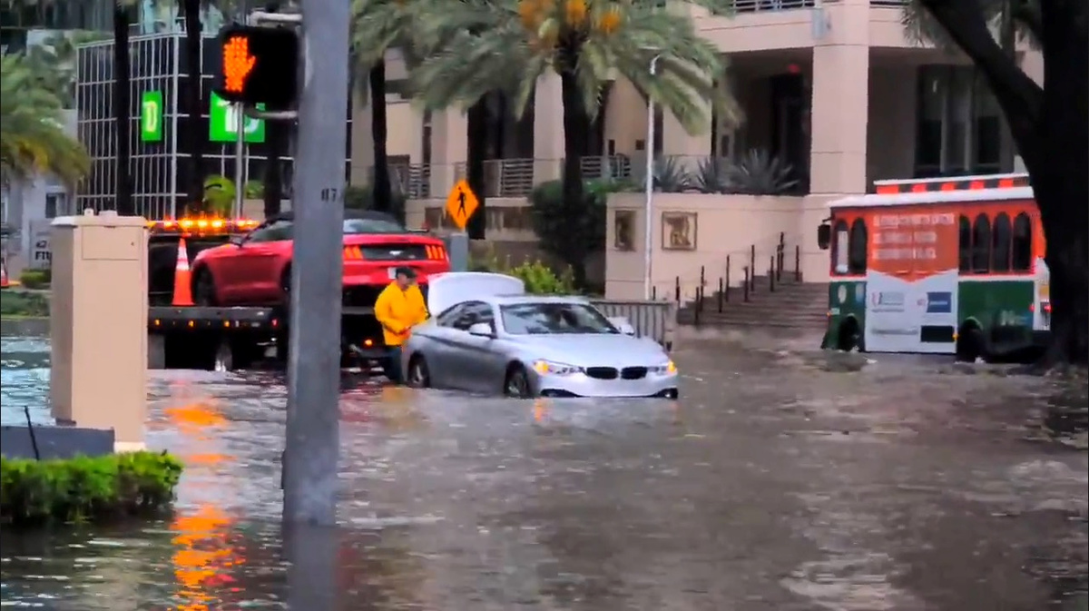 Traffic navigate flood waters in Miami, Florida, U.S. May 25, 2020, in this still image obtained from a social media video. Courtesy of Ryan Rea/Social Media via REUTERS.Traffic navigate flood waters in Miami, Florida, U.S. May 25, 2020, in this still image obtained from a social media video. Courtesy of Ryan Rea/Social Media via REUTERS.