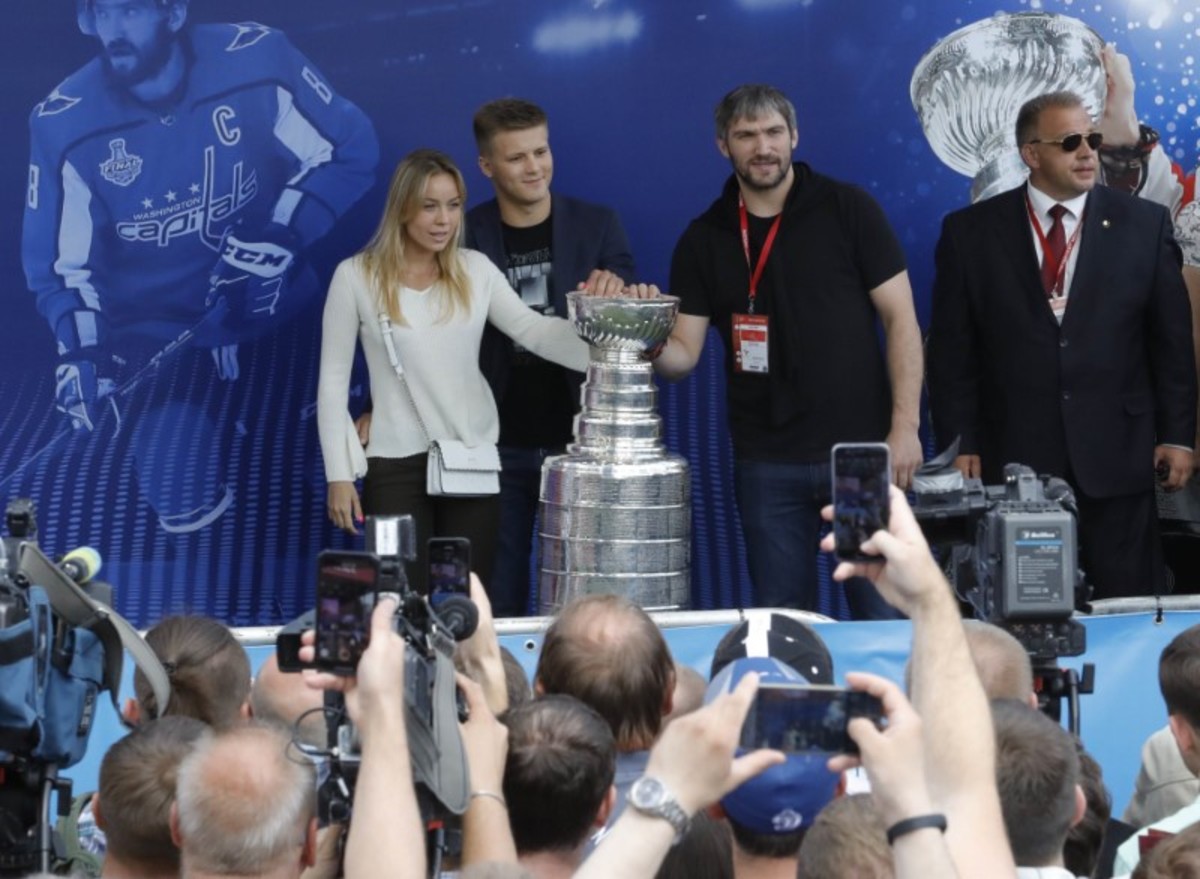 On Saturday in Moscow Ovechkin, one of Russia's most popular athletes, posed alongside fans who stood in line to get a glimpse of the famous Stanley Cup.