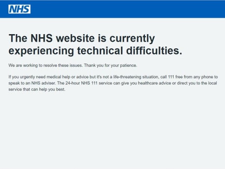 A message on the website said: “The NHS website is currently experiencing technical difficulties.
