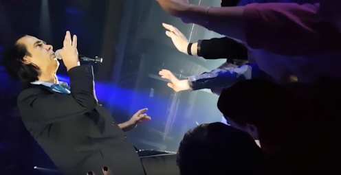 It’s October 2017 and a crowd has filled the Royal Arena in Copenhagen for a performance by Nick Cave and the Bad Seeds. Fans crowded at the edge of the stage applaud feverishly when Cave appears. The singer has the microphone in his right hand and gestures with the left. Standing almost directly above the audience, his hands hover over spectators’ heads, inviting them to reach out to him – his body almost touches them. And when he sings “Can you feel my heart beat?”, Cave grasps spectators’ hands and brings them to his chest. After a brief moment of puzzlement, the audience responds, offering him their hands.
