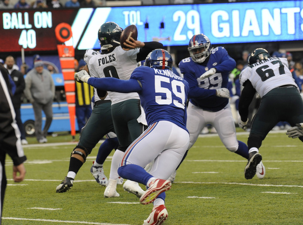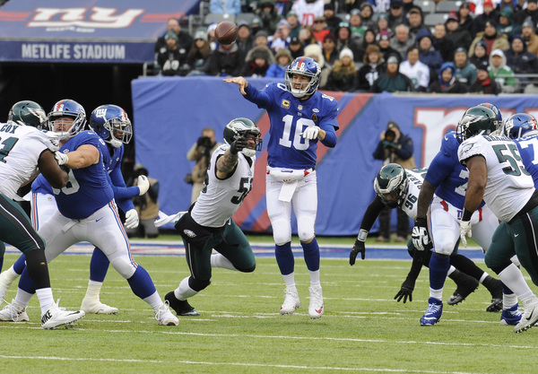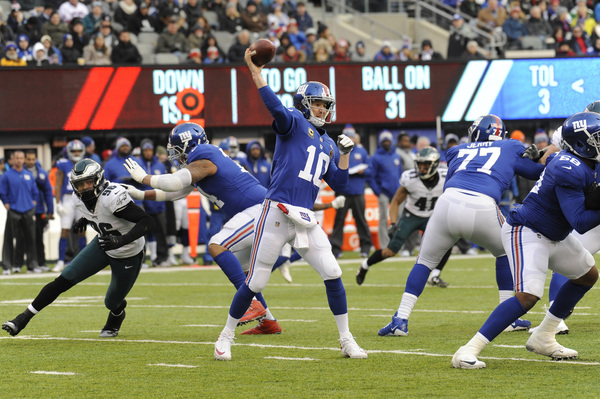 Nick Foles threw four touchdowns in his first start in place of the injured Carson Wentz this season, but it was the Eagles pass defense that will likely prompt more acrimony among fans this week than Wentz's absence. Giants quarterback Eli Manning threw for 427 yards and three touchdowns, an unexpected offensive output from an offense that had not topped 24 points all season. Defensive coordinator Jim Schwartz must fix a pass defense that has been picked apart in recent weeks, although that's easier to do after a win.