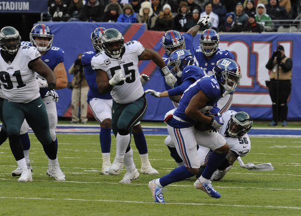 Then came Manning's onslaught. He found Tavares King for a 13-yard score, and then he connected with Sterling Shepard for a 67-yard touchdown in which the Eagles struggled to cover and tackle. A pick play by the Giants helped open space, but the Eagles could have limited the damage with an open-field tackle.