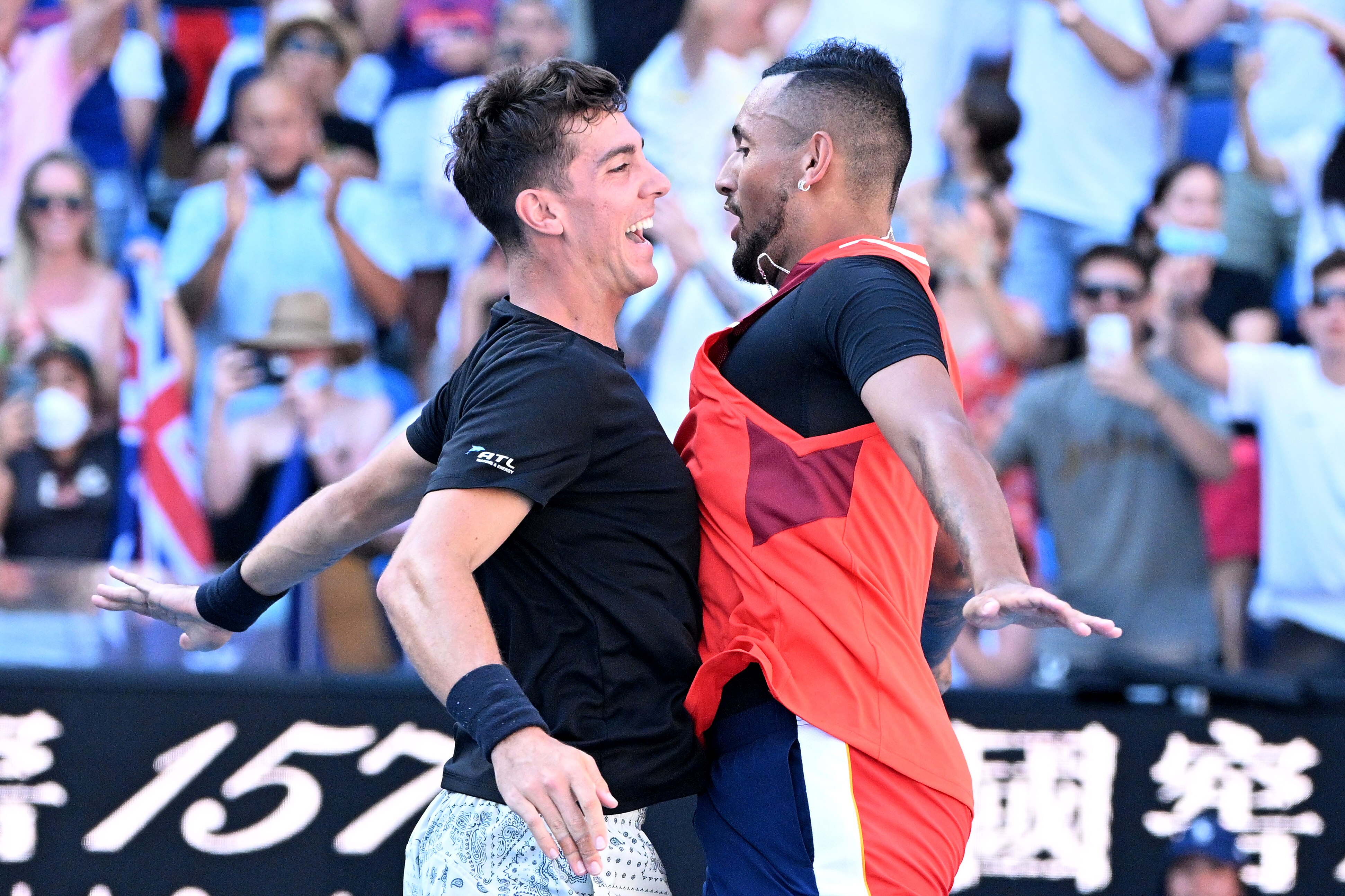 They ran to their chairs at the change of ends as the crowd erupted, and in the following game — on Kokkinakis's serve — a reflex backhand volley at the net from Kyrgios iced the set.
