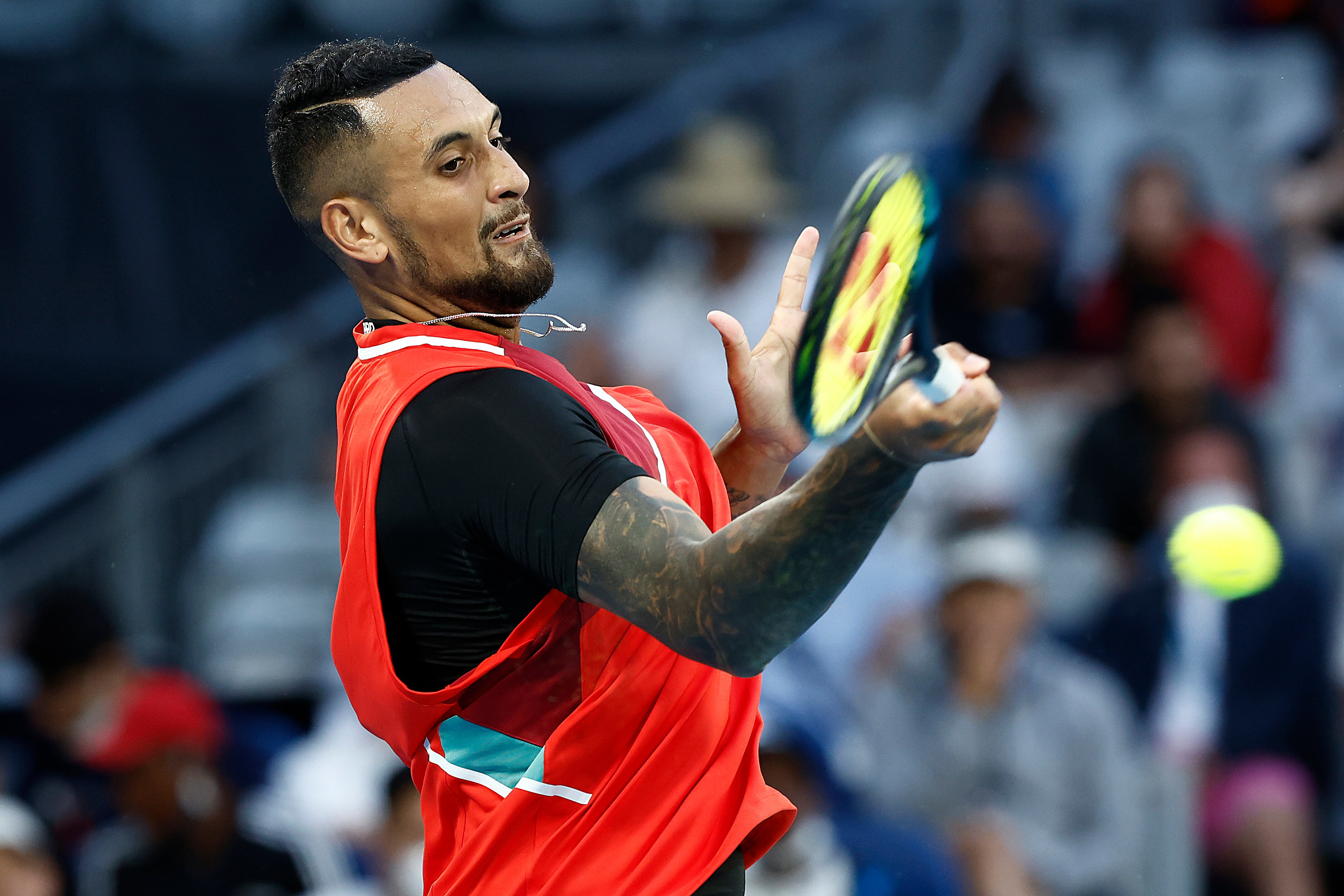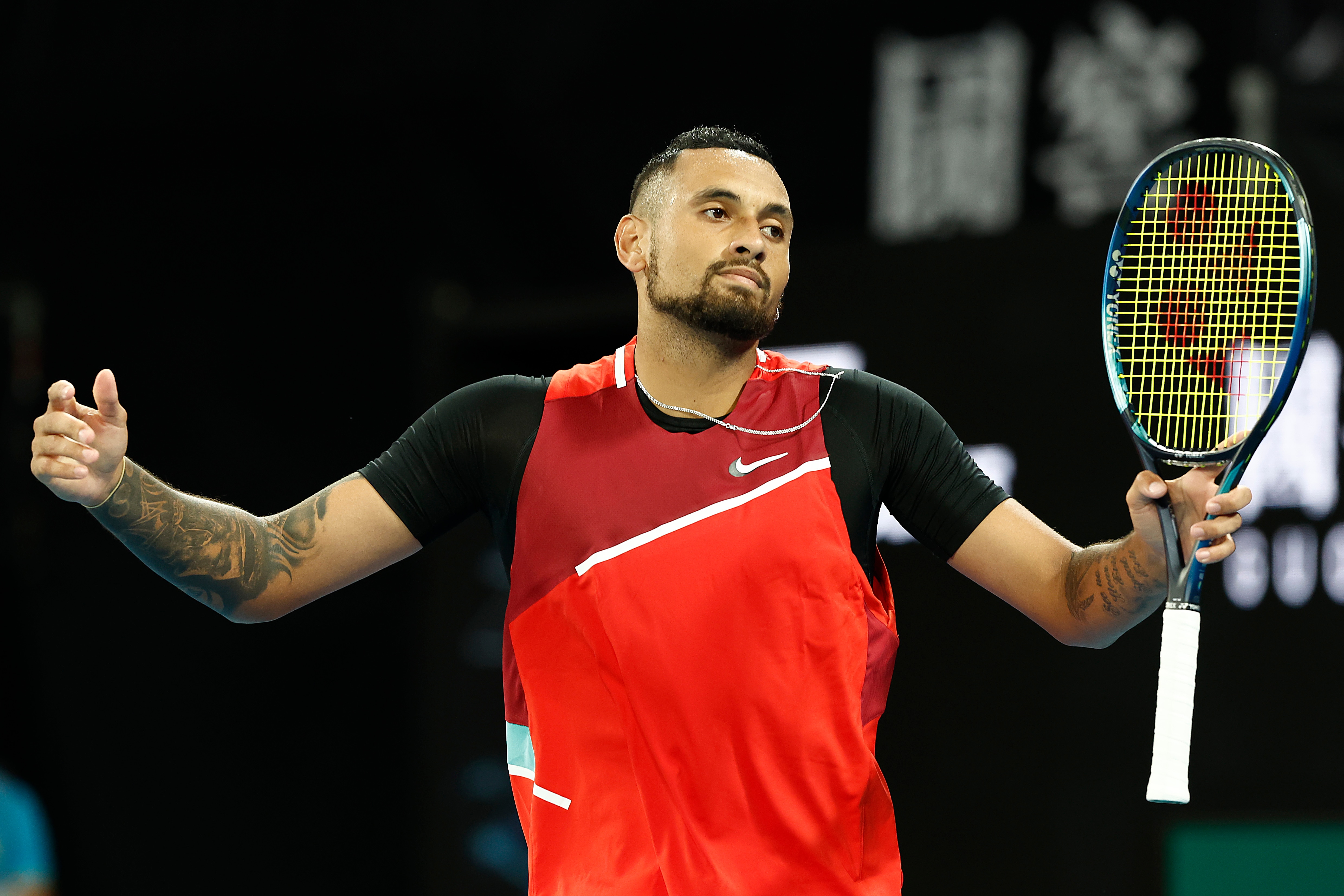 Kyrgios was joined in the second round by fellow Australian Alex de Minaur, who recovered from a slow start to beat Italy's Lorenzo Musetti 3-6, 6-3, 6-0, 6-3 on Margaret Court Arena.