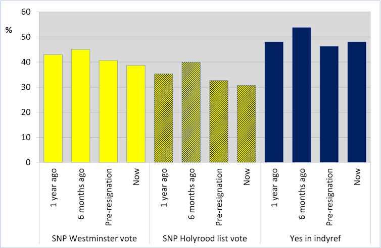 Voters still do not appear willing to desert an SNP that is mired in scandal, has lost its figurehead, and looks in no position to bring Scotland any closer to independence than it came in 2014. That is because voting SNP has become the partisan or electoral expression of support for independence.
