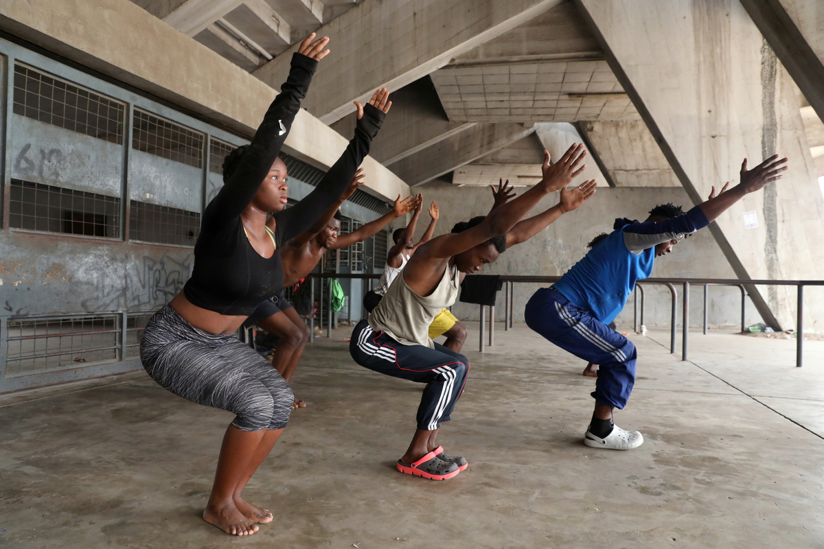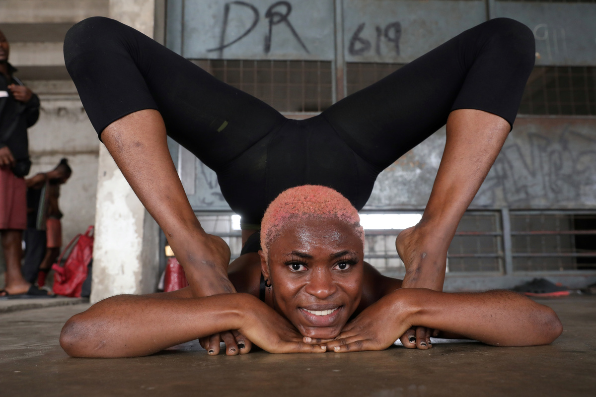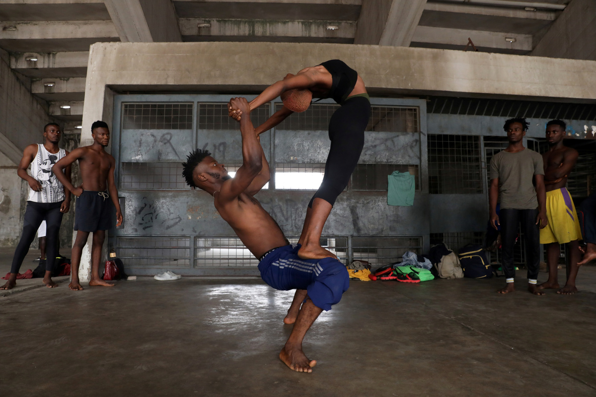 Ifeoma Amazobi, alonside her colleague, performs contortions during rehearsals at the National Stadium in Lagos, Nigeria January 27, 2020. Picture taken January 27, 2020. REUTERS/Temilade AdelajaA contortion troupe exercise at their rehearsals at the National stadium in Lagos, Nigeria January 27, 2020. Picture taken January 27, 2020. REUTERS/Temilade AdelajaIfeoma Amazobi, 22, performs contortions during rehearsals at the National Stadium in Lagos, Nigeria January 27, 2020. Picture taken January 27, 2020. REUTERS/Temilade AdelajaOyindamola Kolawole, 26, performs contortion at a show called Limberness in Lagos, Nigeria February 1, 2020. Picture taken February 1, 2020. REUTERS/Temilade AdelajaIfeoma Amazobi, 22, performs at a show called Limberness in Lagos, Nigeria February 1, 2020. Picture taken February 1, 2020. REUTERS/Temilade AdelajaNigerian Contortionist, Oyindamola Kolawole, 26, speaks to Reuters during an interview at the National stadium in Lagos, Nigeria January 27, 2020. Picture taken January 27, 2020. REUTERS/Temilade AdelajaNigerian Contortionist, Ifeoma Amazobi, 22, speaks to Reuters during an interview at the National stadium in Lagos, Nigeria January 27, 2020. Picture taken January 27, 2020. REUTERS/Temilade Adelaja