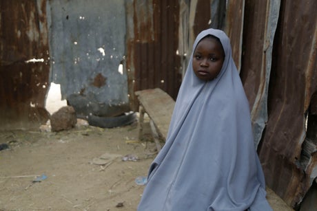 An Associated Press reporter saw hundreds of girls dressed in light blue hijabs and barefoot sitting at the state Government House office in Gusau.
