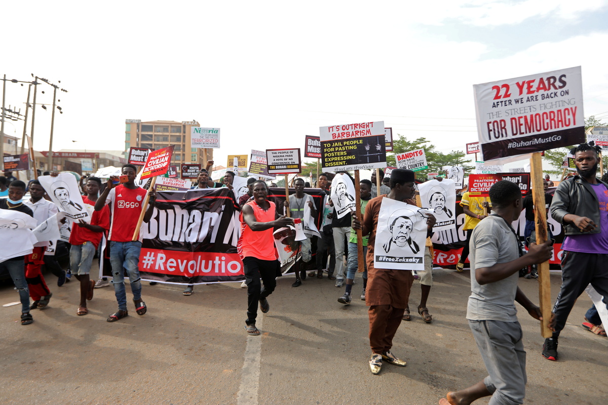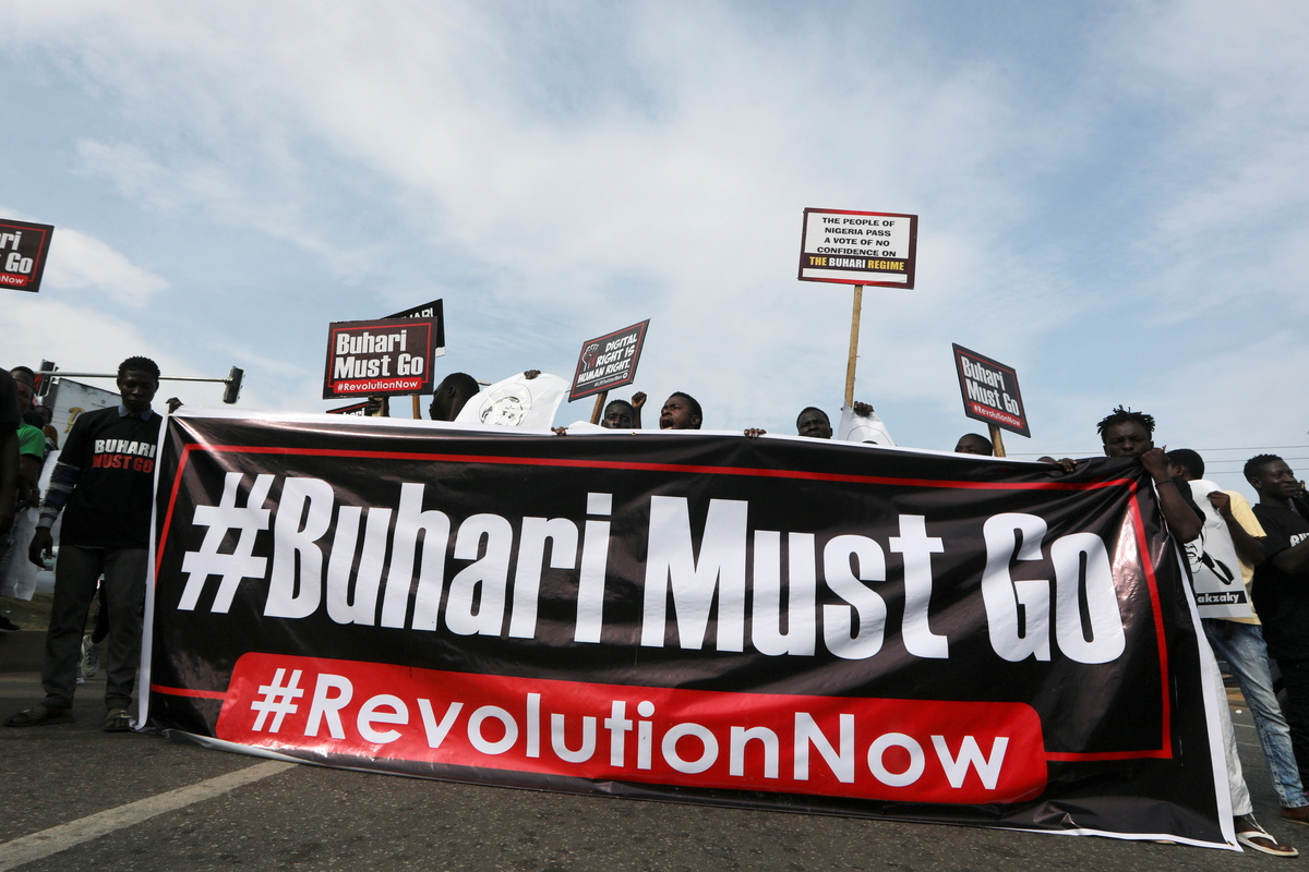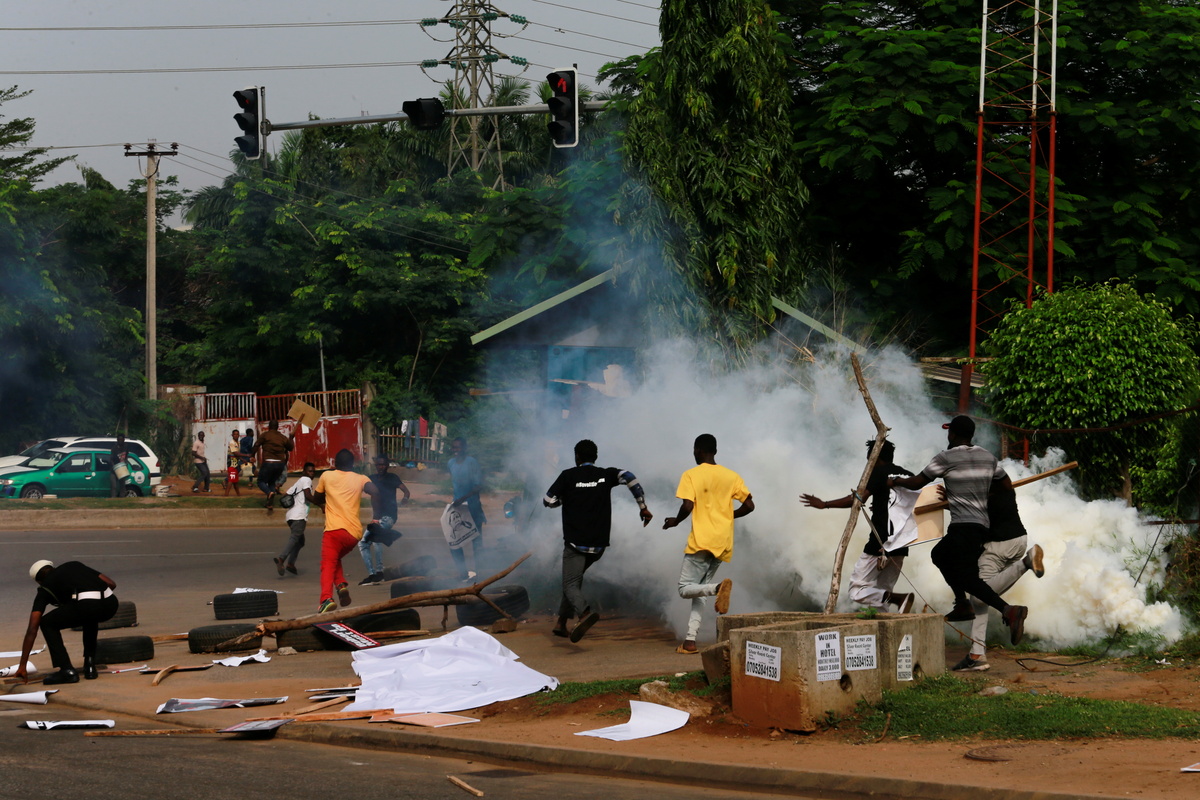 Reuters witnesses saw police firing guns into the air and tear gas into the crowds to disperse demonstrators who held placards and chanted "Buhari must go", a reference to President Muhammadu Buhari.