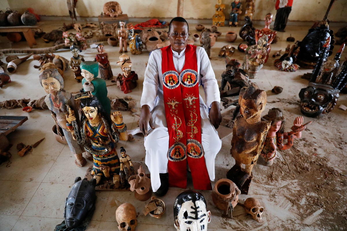 A Roman Catholic priest is collecting and saving hundreds of traditional pre-Christian religious artefacts in southeast Nigeria that new converts to Christianity had planned to burn.